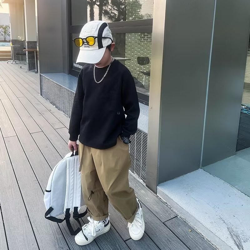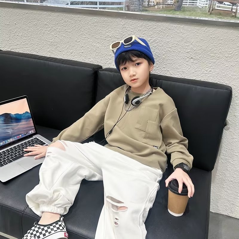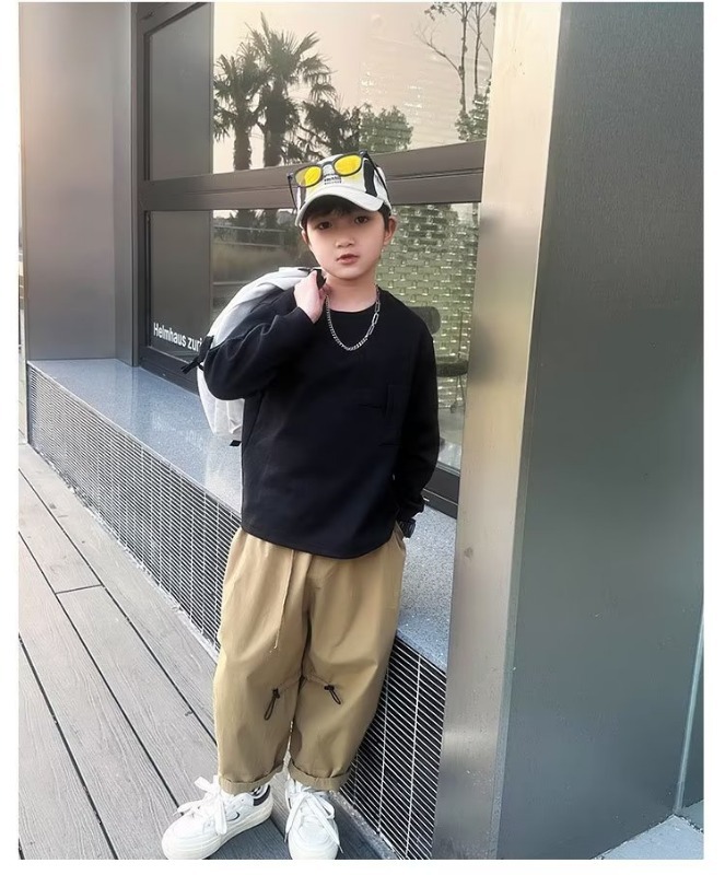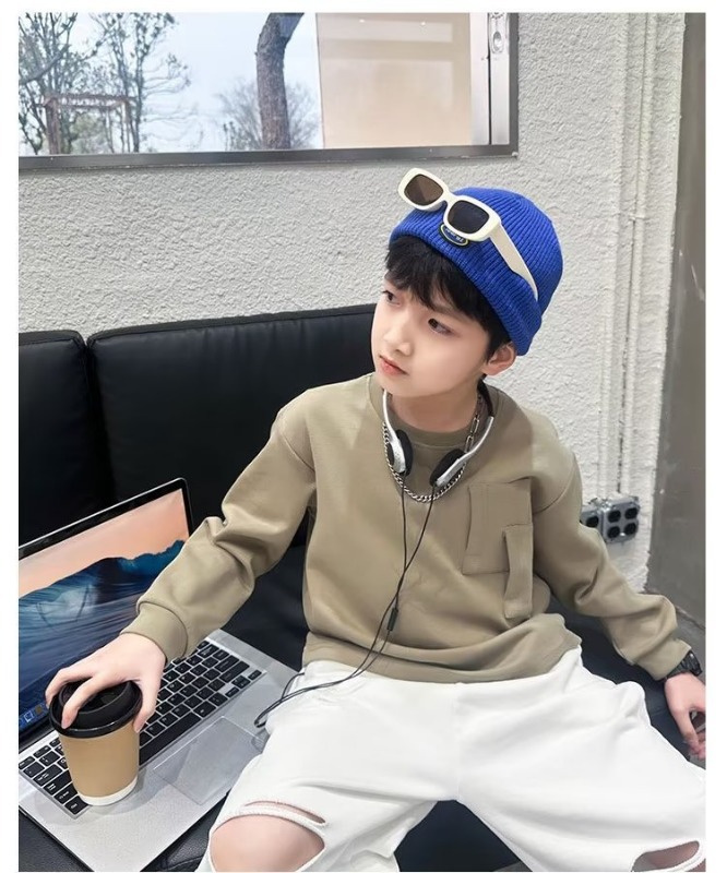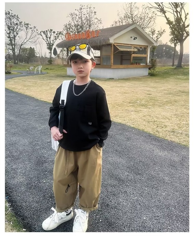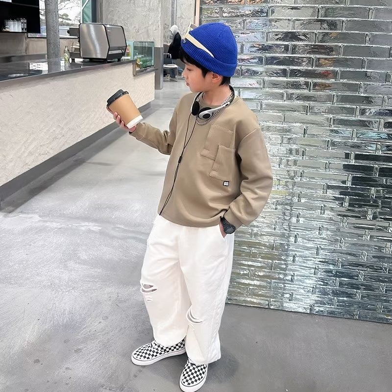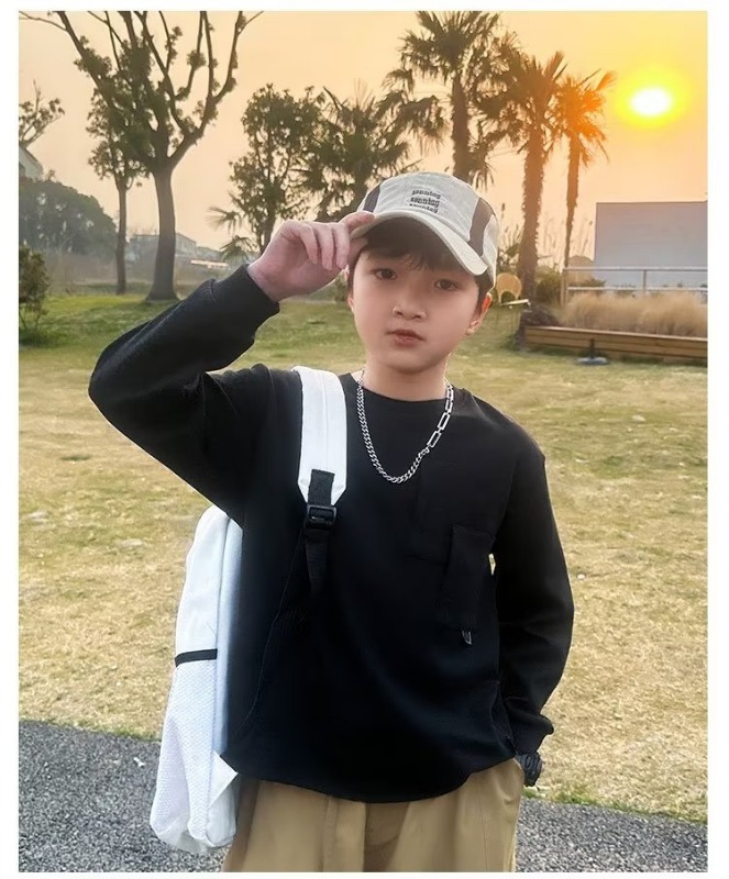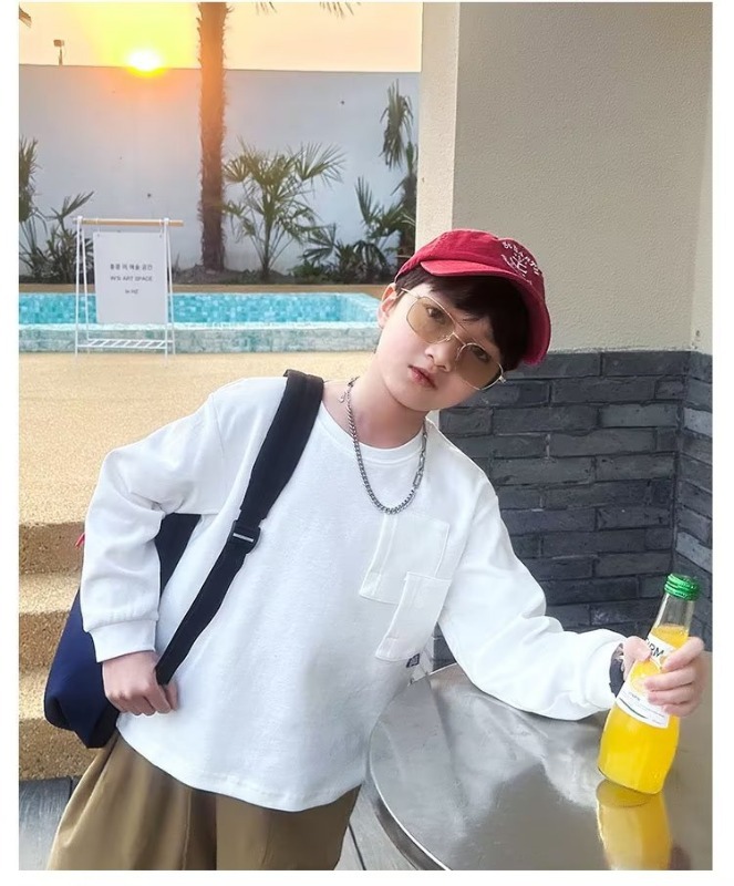 우아한 티셔츠 새로운 패션 하라주쿠 패션 일본 인스 타 그램 스타일 똑바로 게으른 둥근 목 어린이 긴 소매 봄과 가을스토어 가기