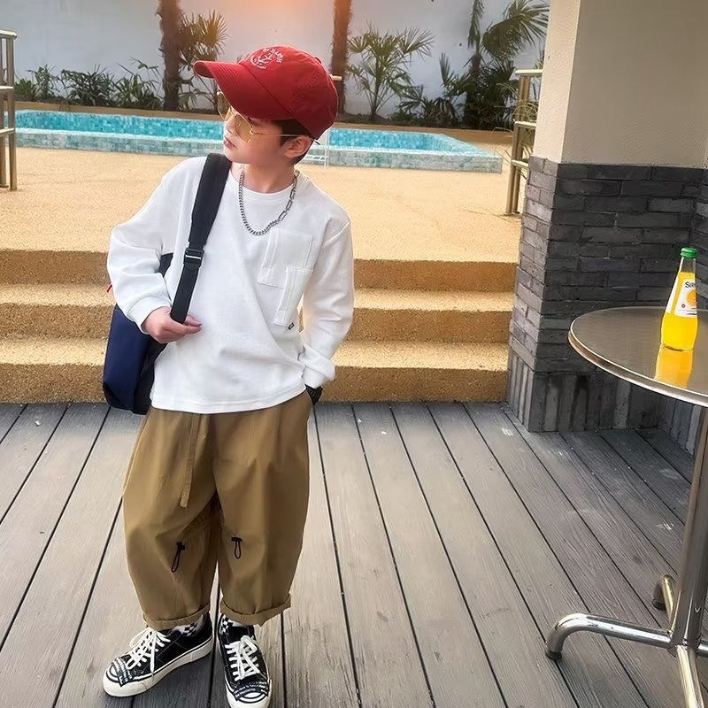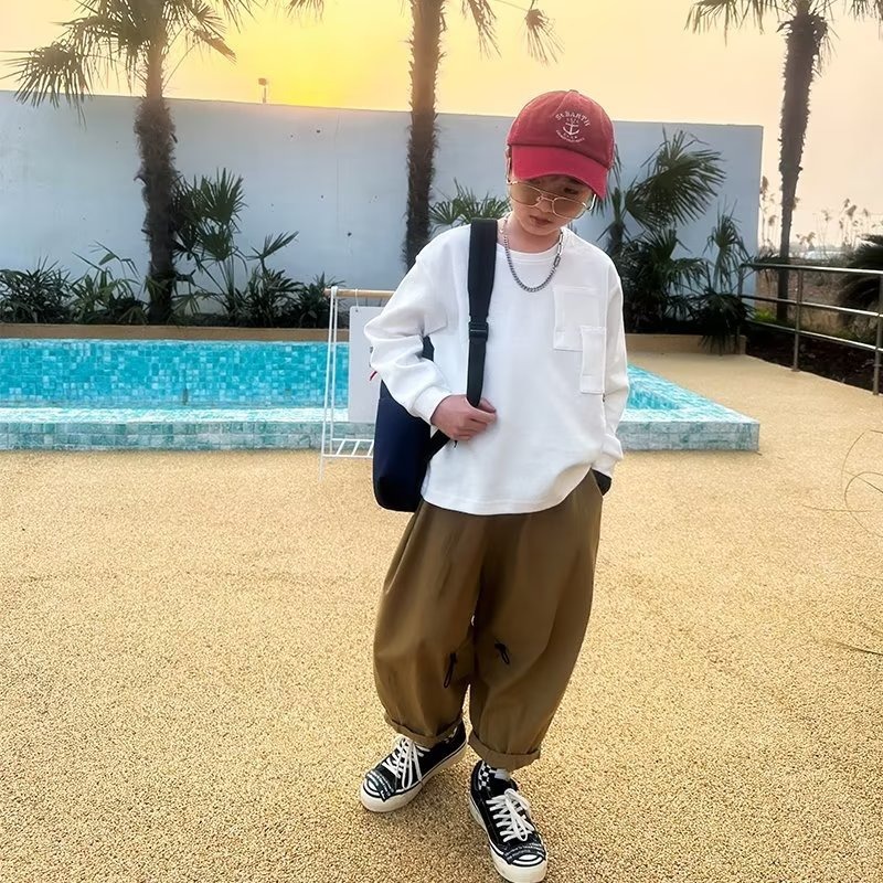 우아한 티셔츠 새로운 패션 하라주쿠 패션 일본 인스 타 그램 스타일 똑바로 게으른 둥근 목 어린이 긴 소매 봄과 가을