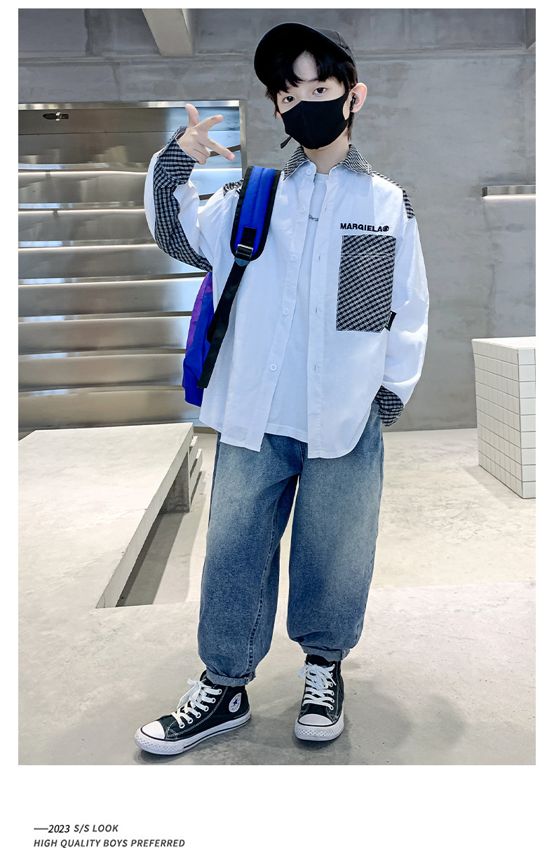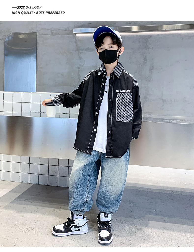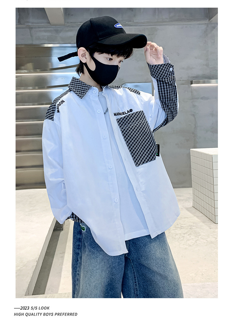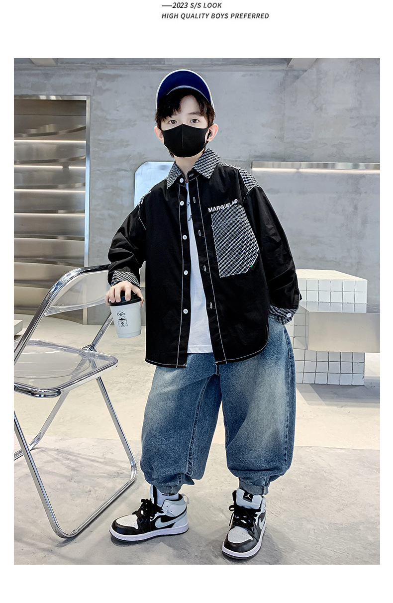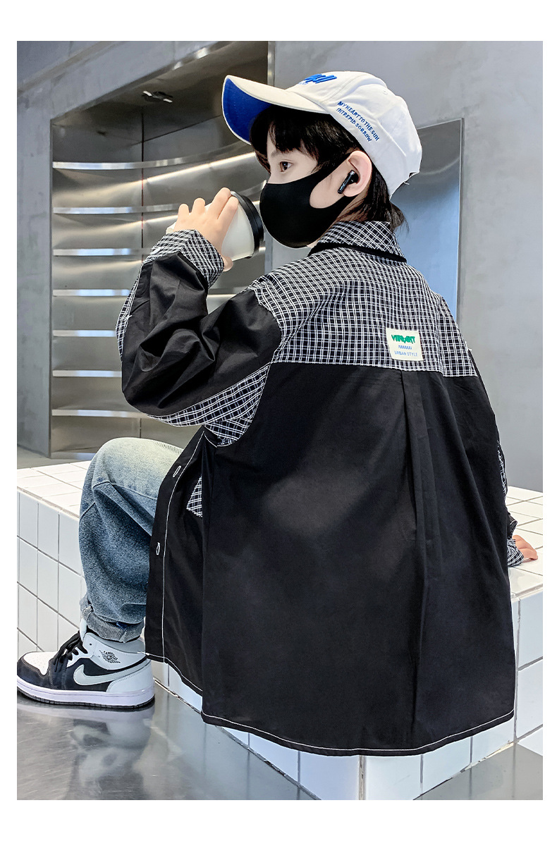 소년 가을 셔츠 재킷 2025 새로운 가을 셔츠 큰 어린이 봄과 가을 잘 생긴 어린이 서양식스토어 가기