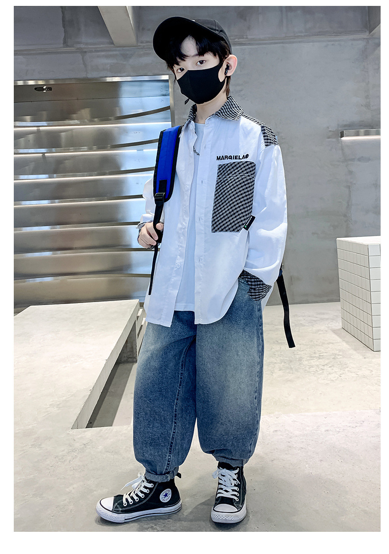 소년 가을 셔츠 재킷 2025 새로운 가을 셔츠 큰 어린이 봄과 가을 잘 생긴 어린이 서양식