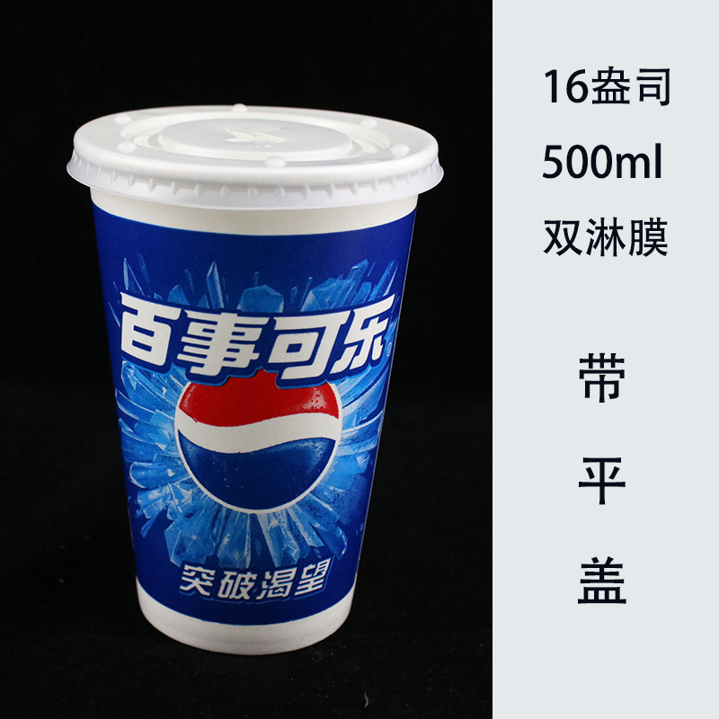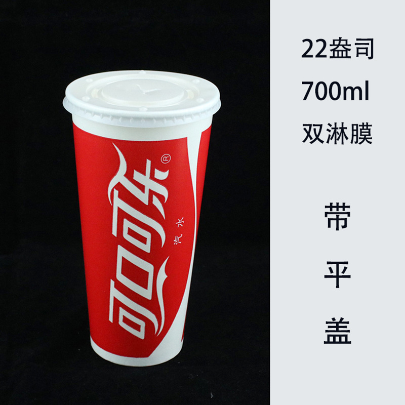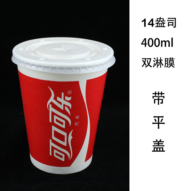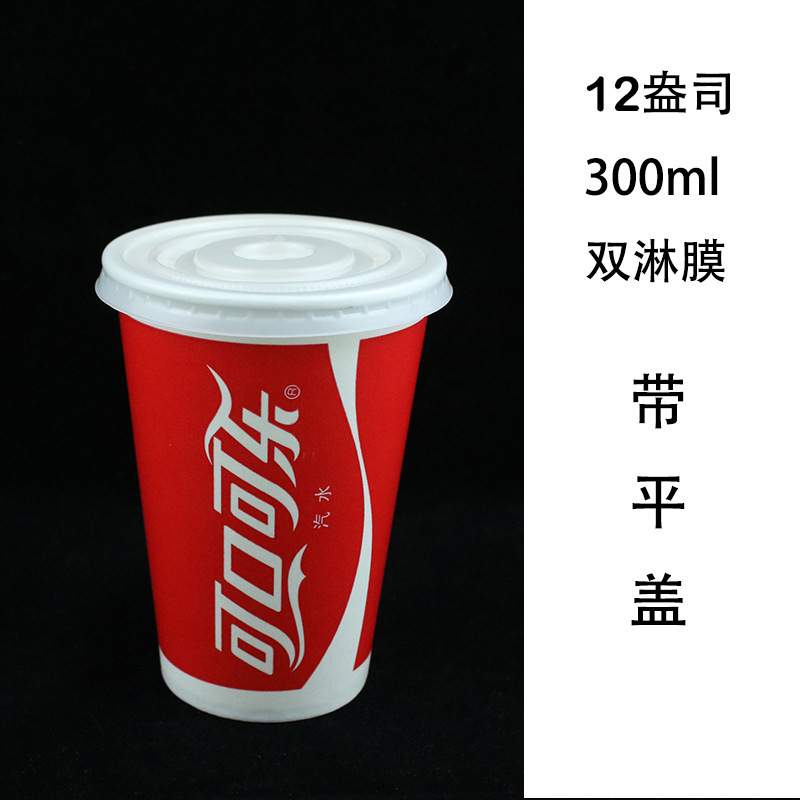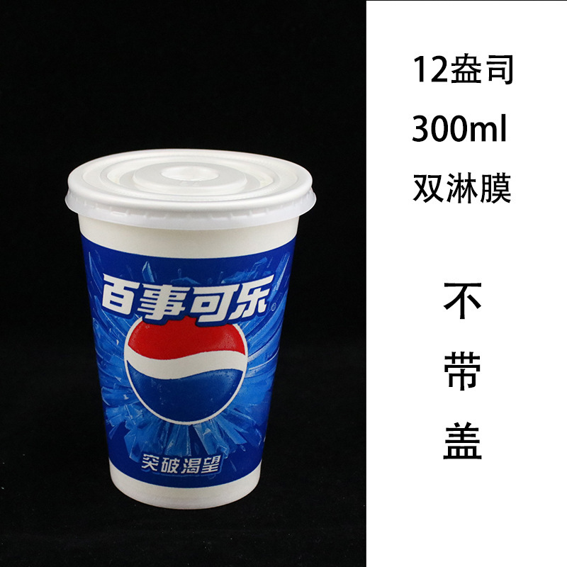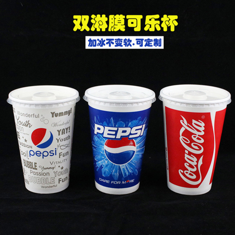 뚜껑이있는 콜라 컵 일회용 펩시 페이퍼 컵 상업용 코카콜라 두꺼운 더블 필름 컵 외부 밴드
