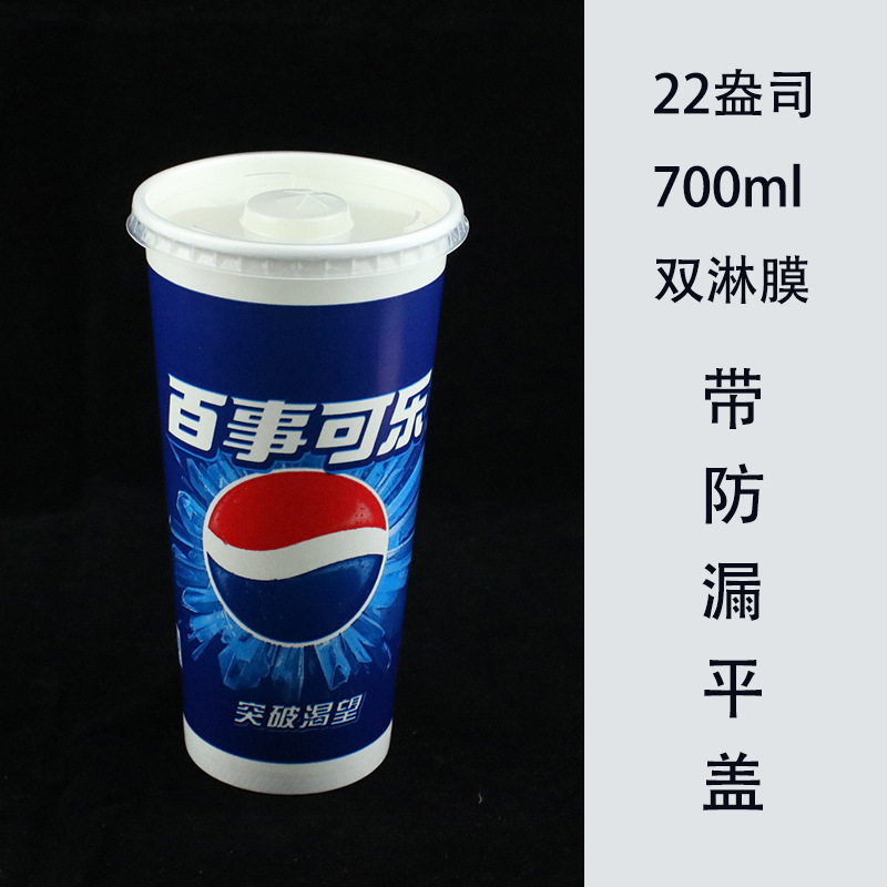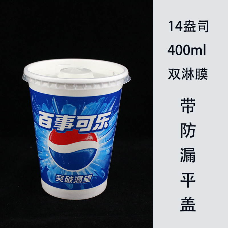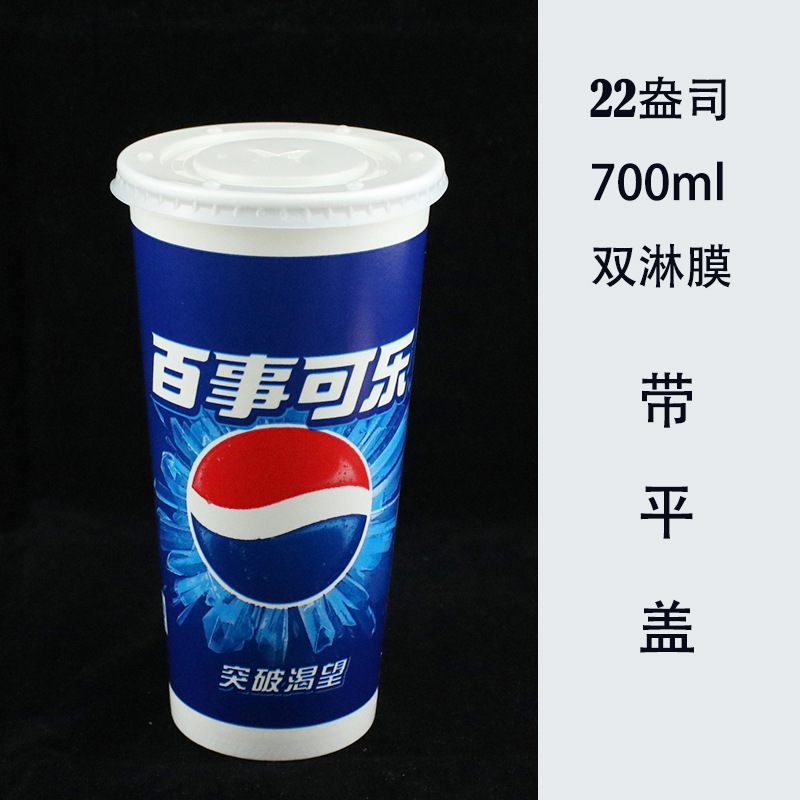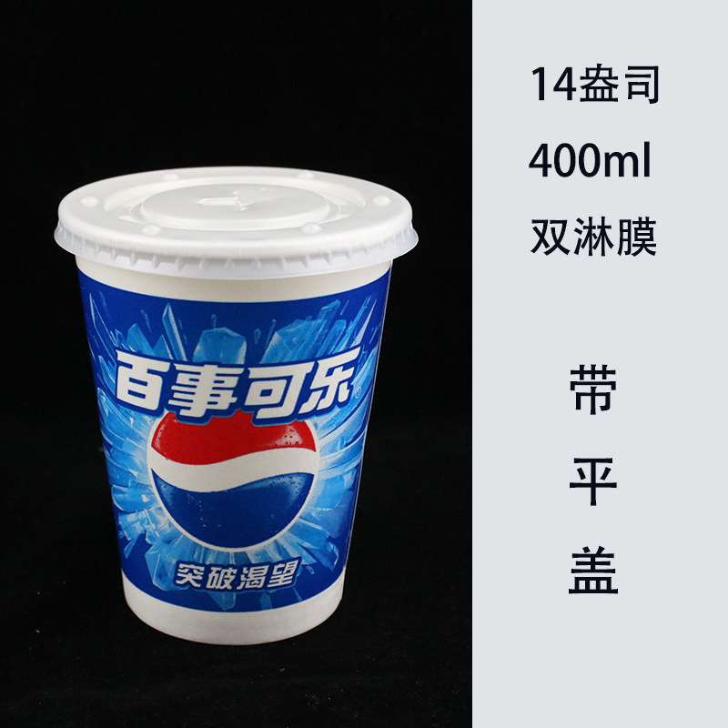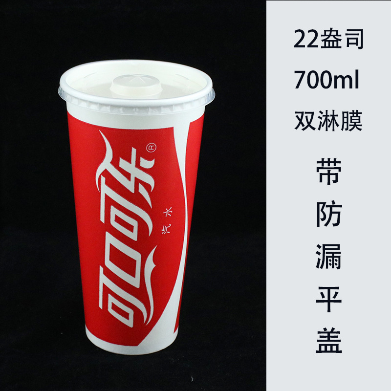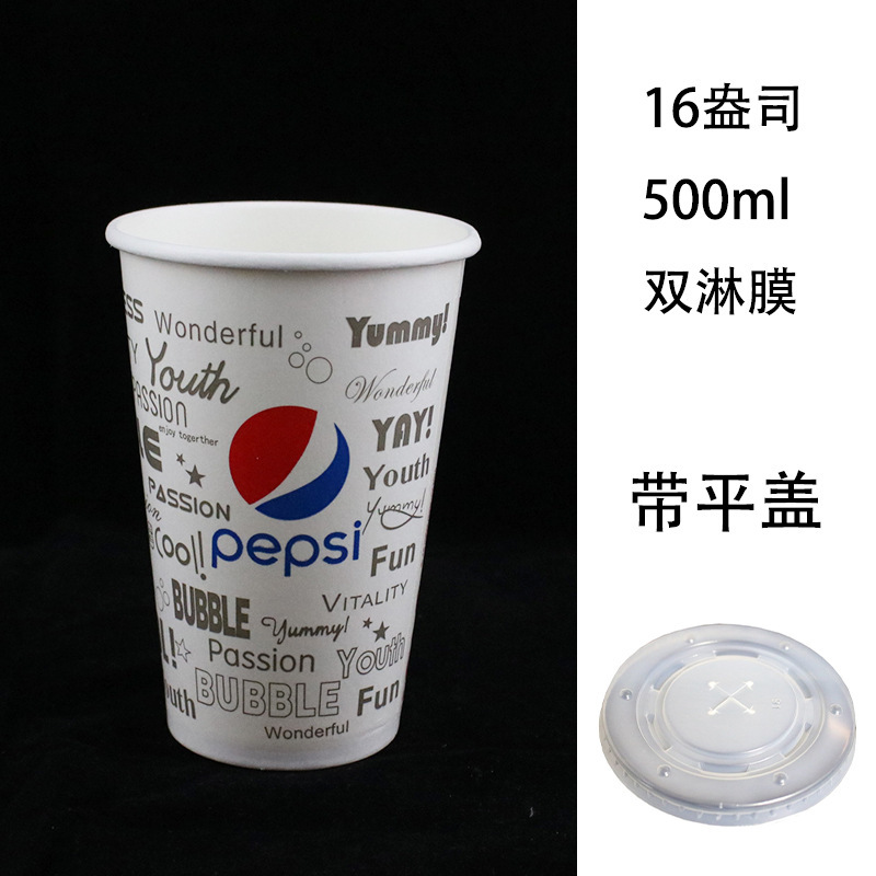 뚜껑이있는 콜라 컵 일회용 펩시 페이퍼 컵 상업용 코카콜라 두꺼운 더블 필름 컵 외부 밴드