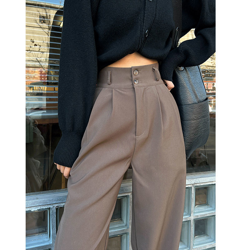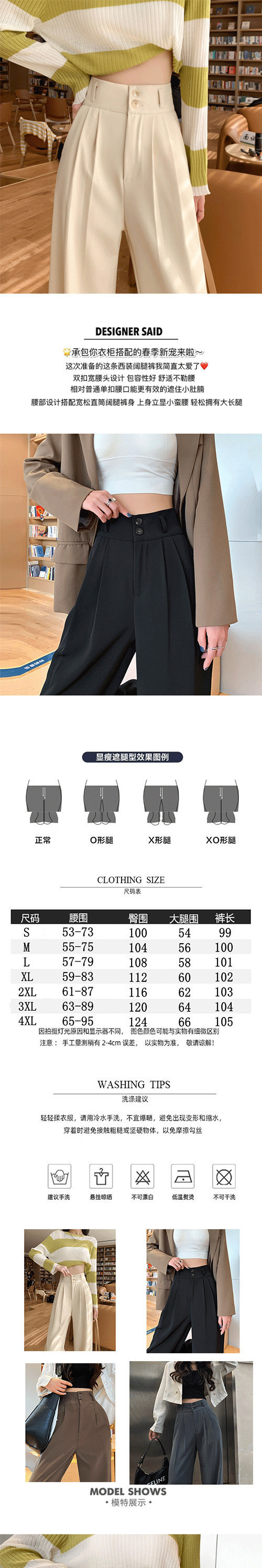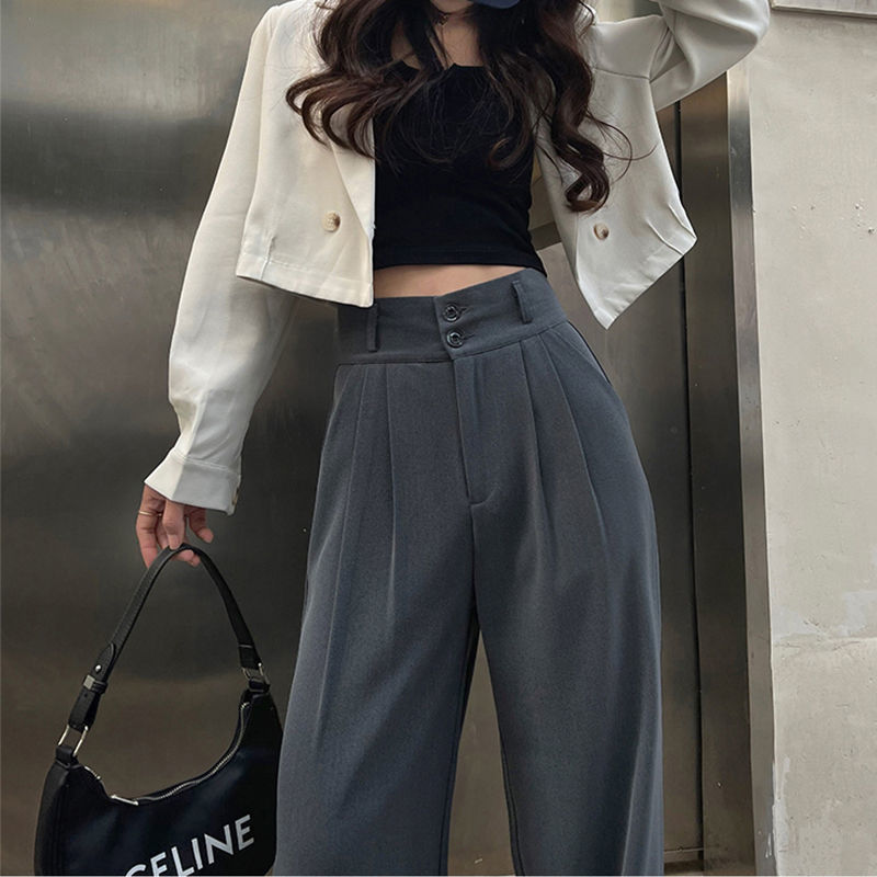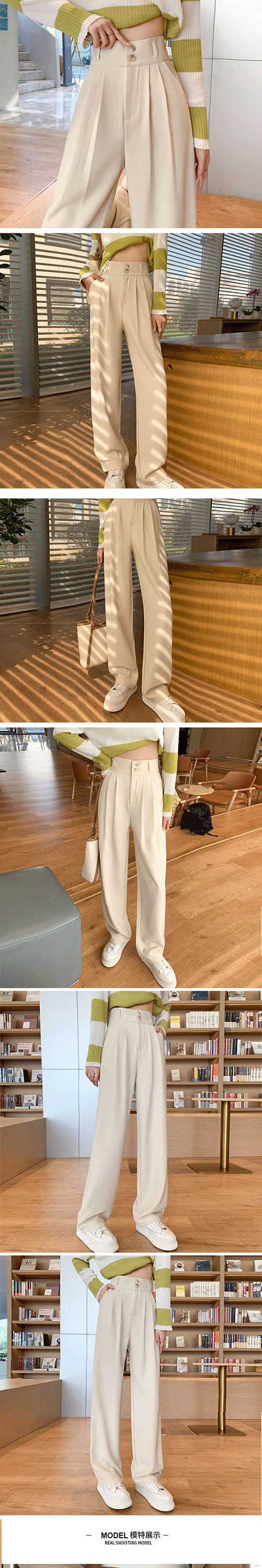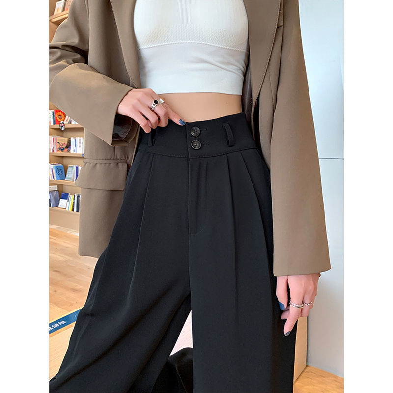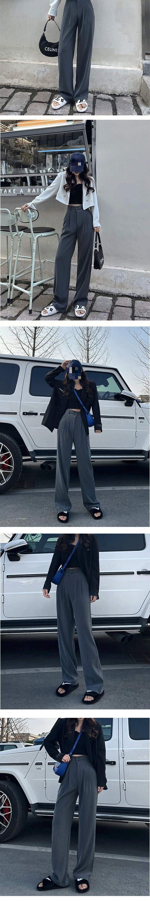 아이보리 넓은 다리 바지 여성용 봄과 여름 느슨한 교수형 바지 높은 허리 슬리밍 블랙 스트레이트 다리 바지 트렌디스토어 가기