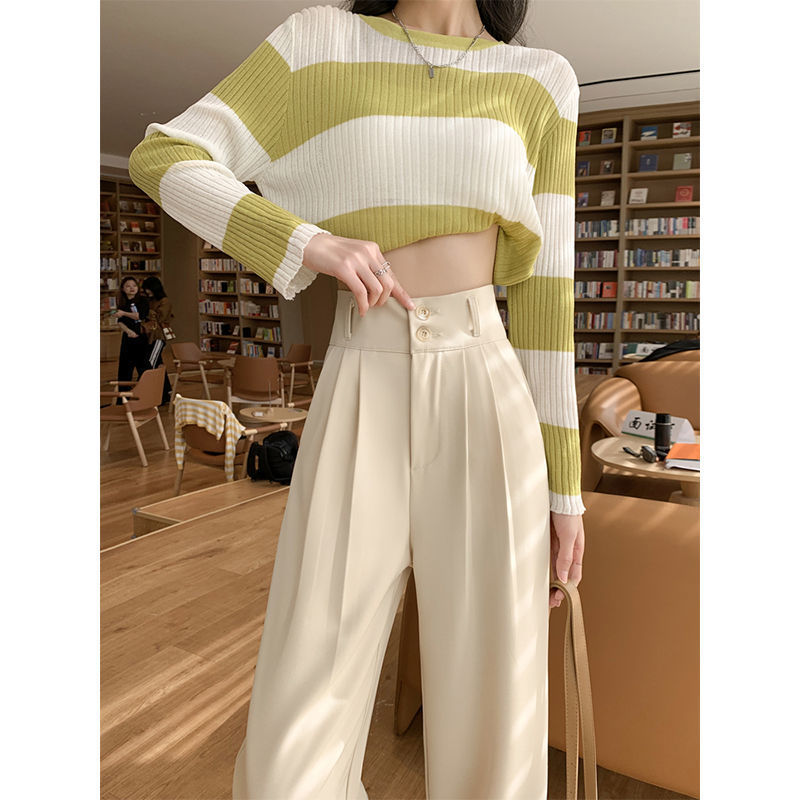 아이보리 넓은 다리 바지 여성용 봄과 여름 느슨한 교수형 바지 높은 허리 슬리밍 블랙 스트레이트 다리 바지 트렌디
