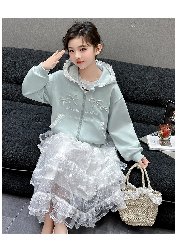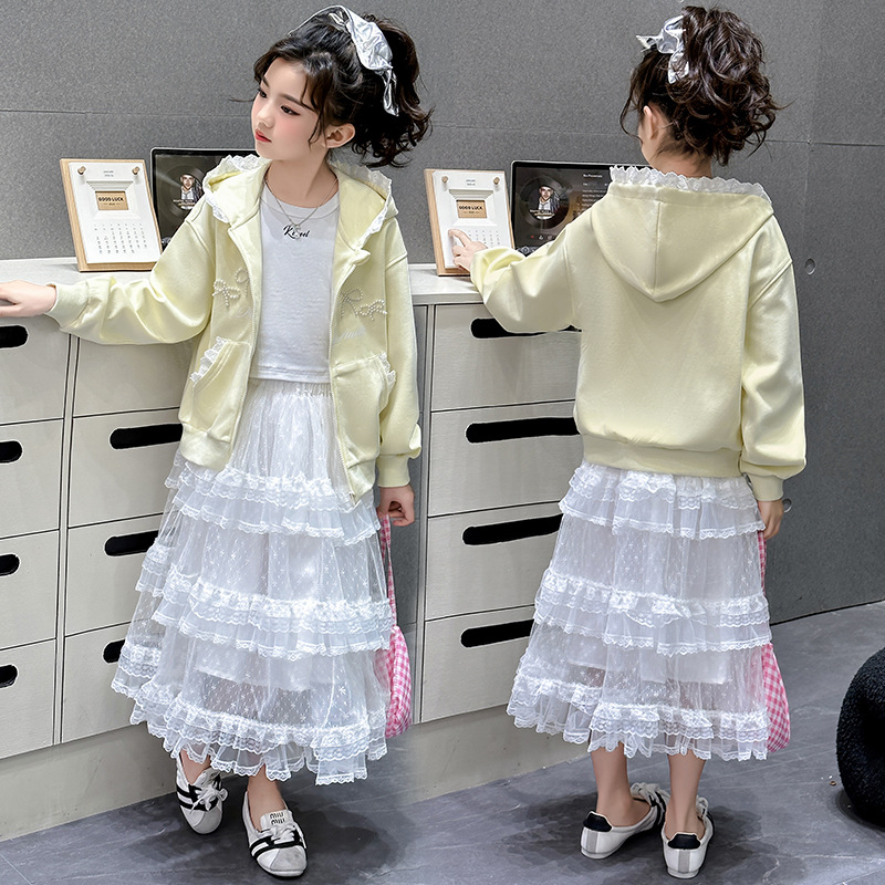 소녀 봄 가을 세트 2025 새로운 스타일 유행 봄 옷 어린이 옷 봄 소녀 카디건 2 조각 세트스토어 가기