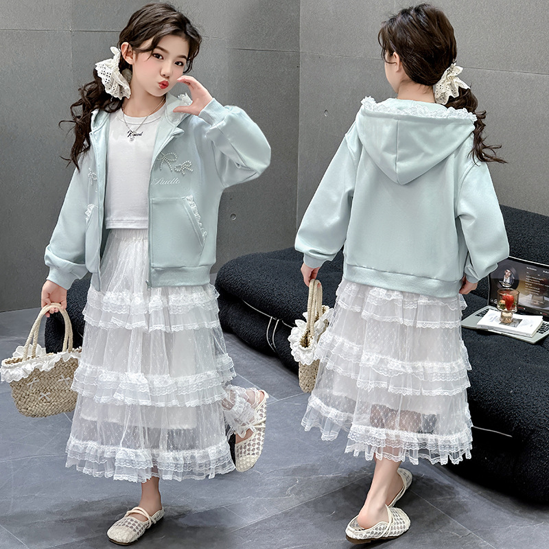 소녀 봄 가을 세트 2025 새로운 스타일 유행 봄 옷 어린이 옷 봄 소녀 카디건 2 조각 세트