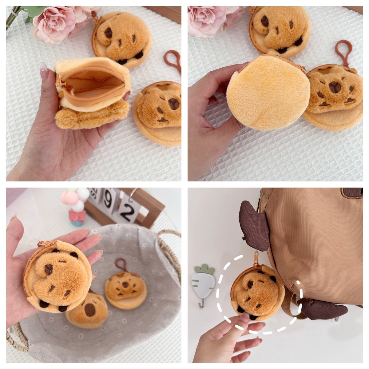 Xiaohongshu Kapibara 헤드폰 동전 지갑 귀여운 만화 플러시 동전 지갑 여성용 수납 키 가방스토어 가기