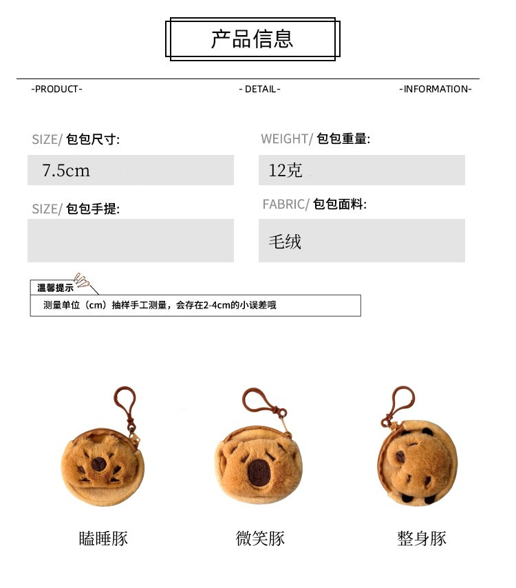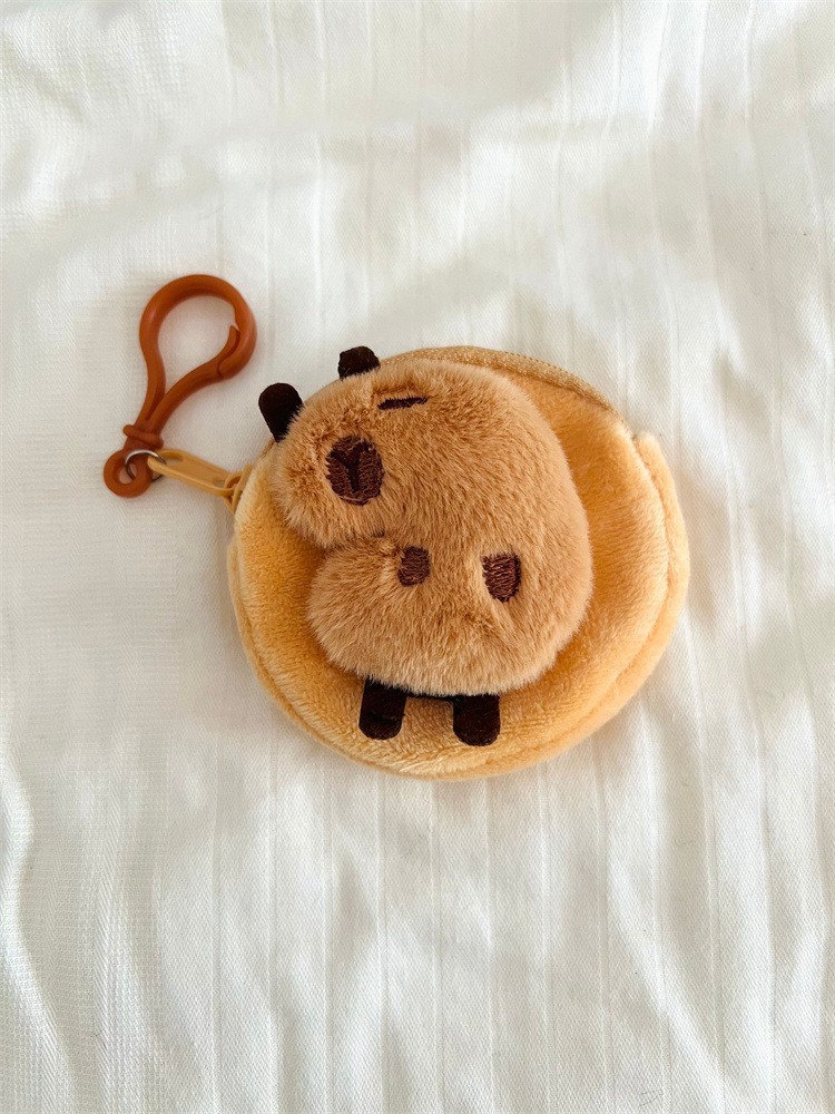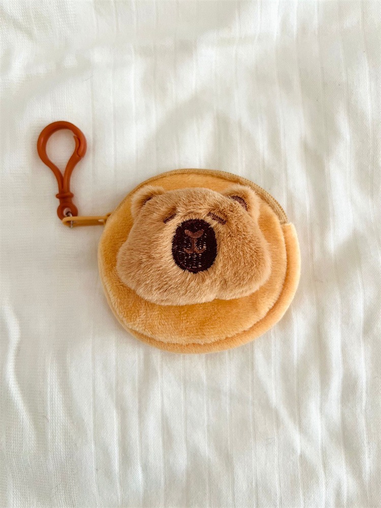 Xiaohongshu Kapibara 헤드폰 동전 지갑 귀여운 만화 플러시 동전 지갑 여성용 수납 키 가방