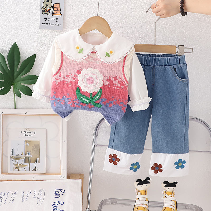 [점포 판매] 소녀 가을 원피스 2025 세트 아기 새 서양식 어린이 봄 · 가을 스웨터 조끼 3