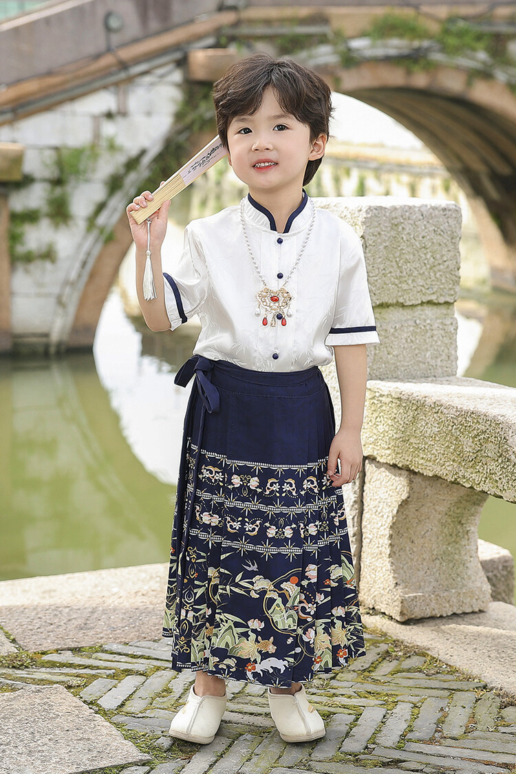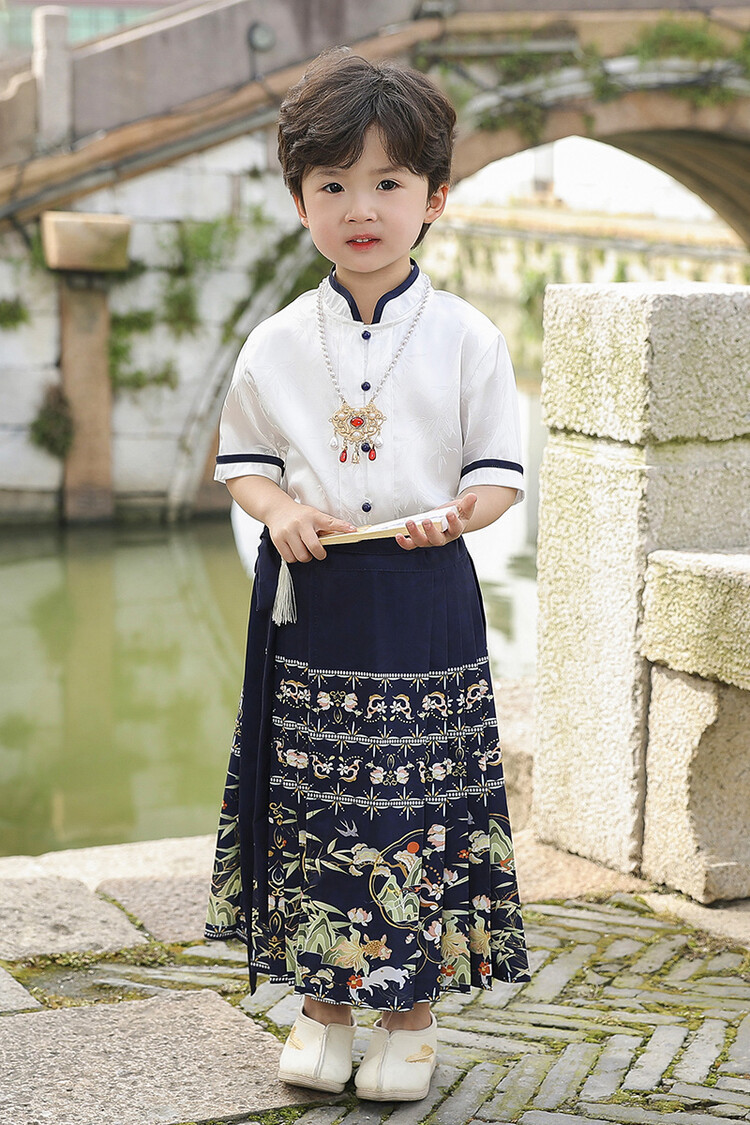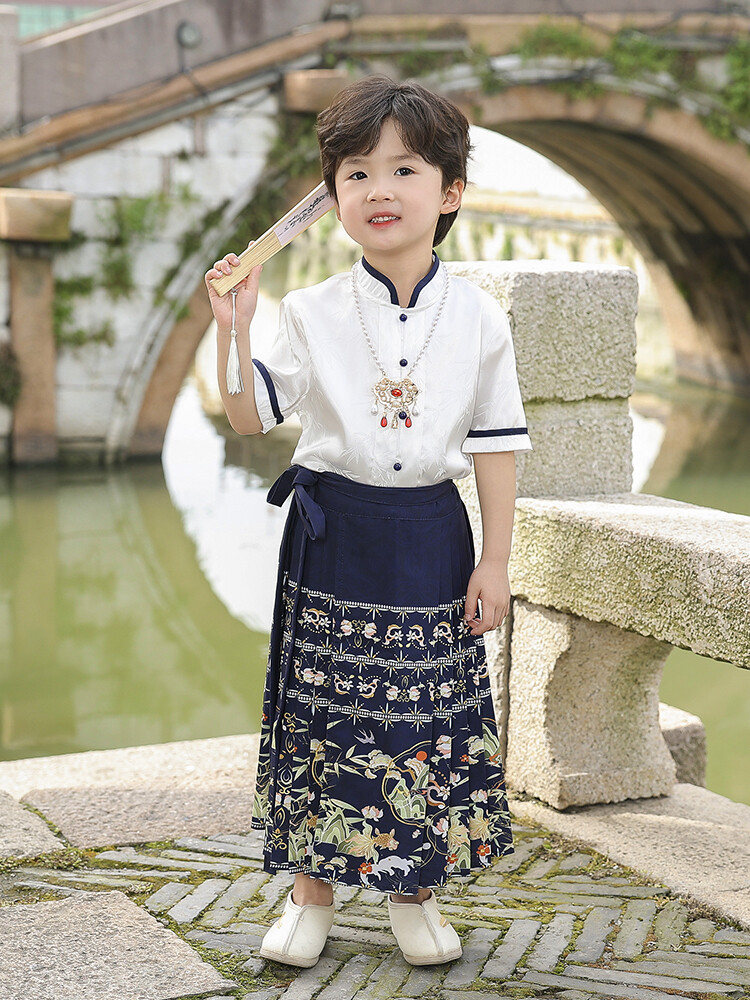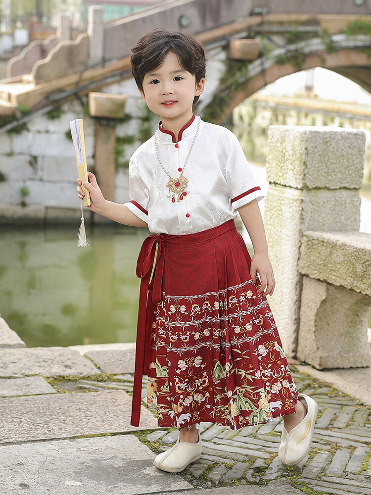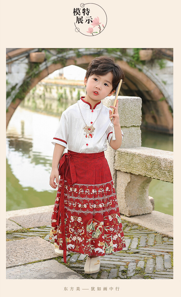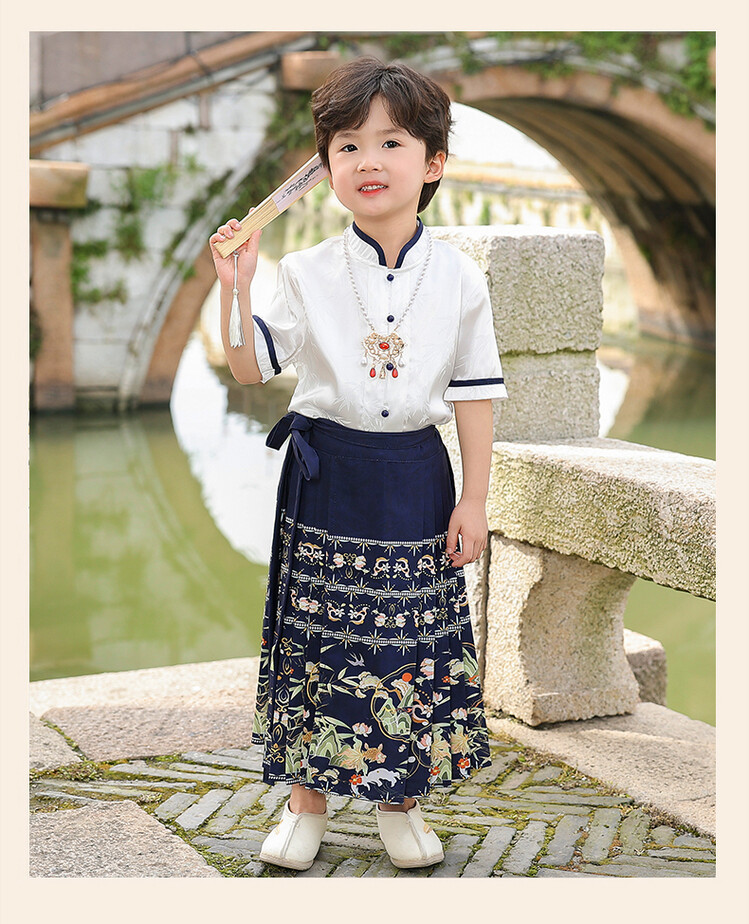 소년 여름 얇은 말 얼굴 치마 2025 새로운 어린이 고대 옷 한푸 중국 스타일 세트 아기 소녀 탕 세트