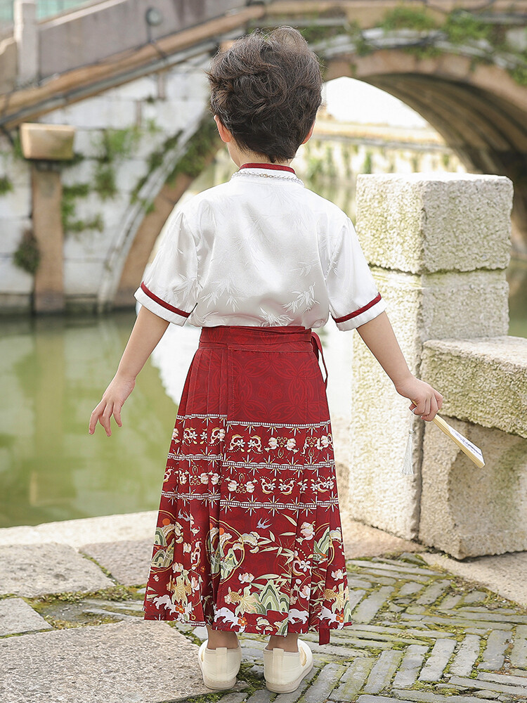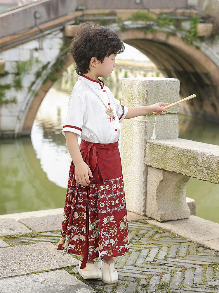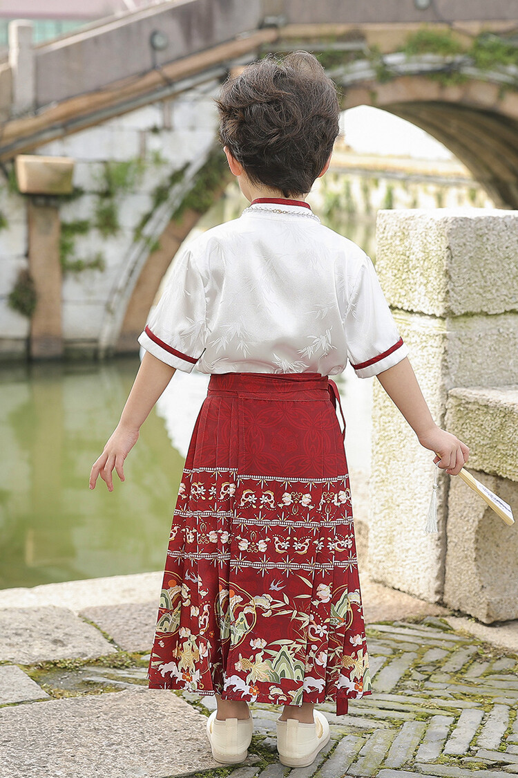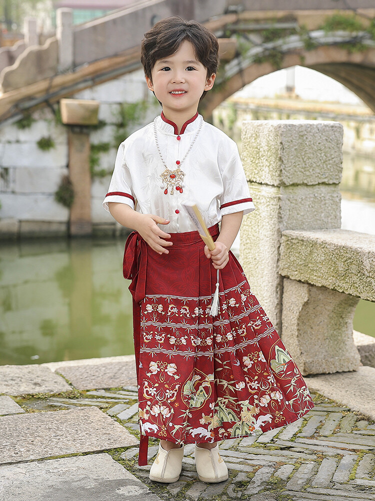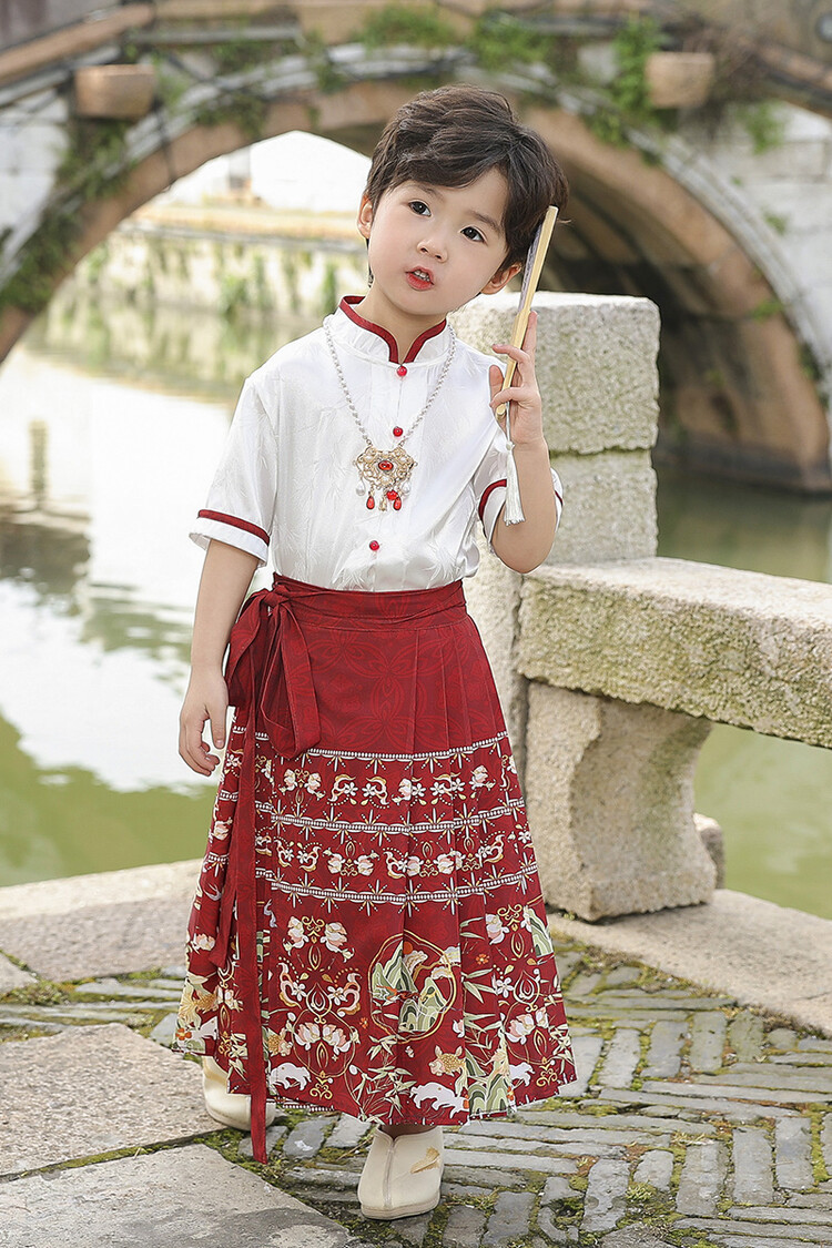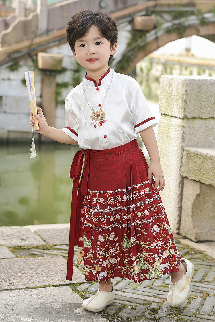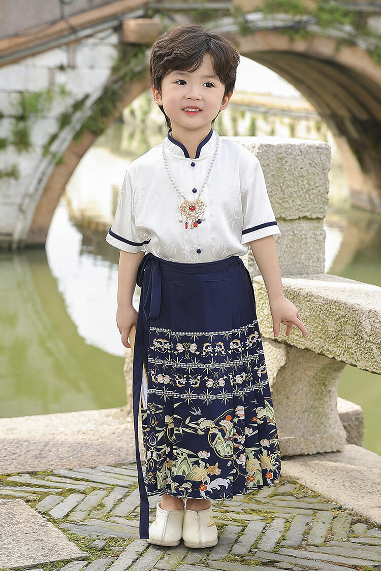 소년 여름 얇은 말 얼굴 치마 2025 새로운 어린이 고대 옷 한푸 중국 스타일 세트 아기 소녀 탕 세트