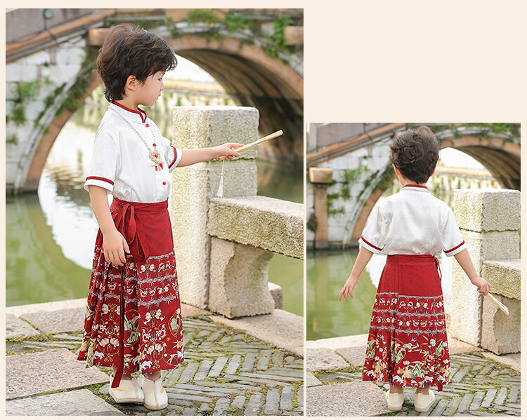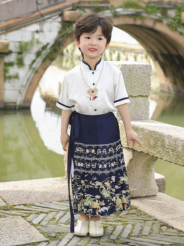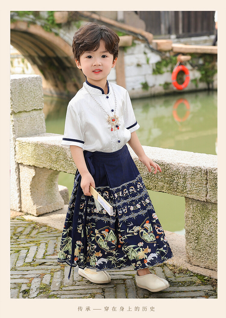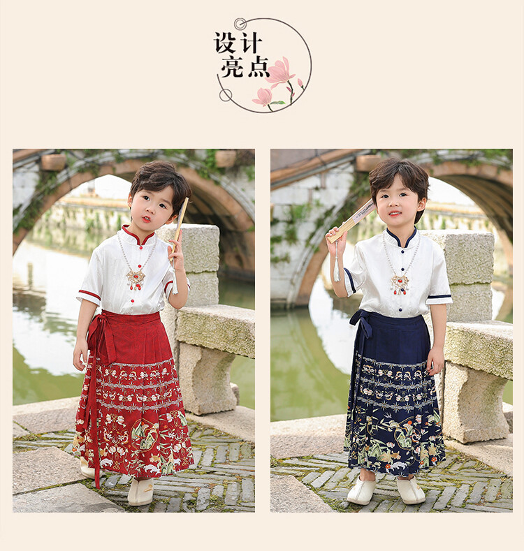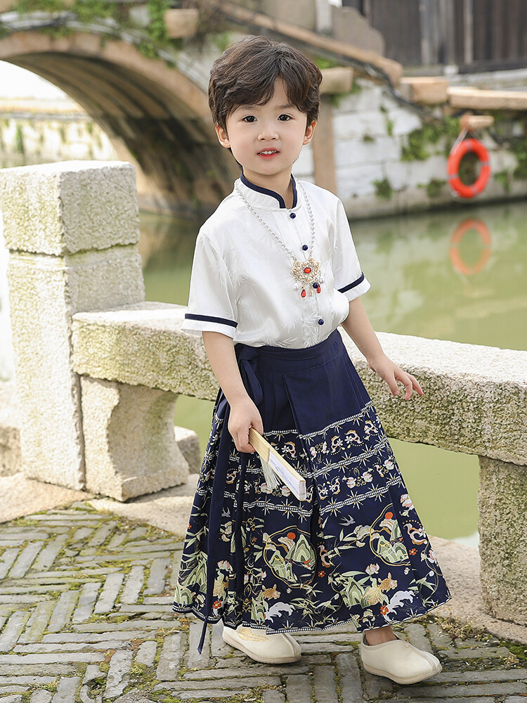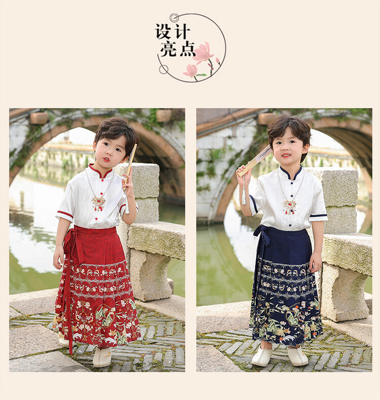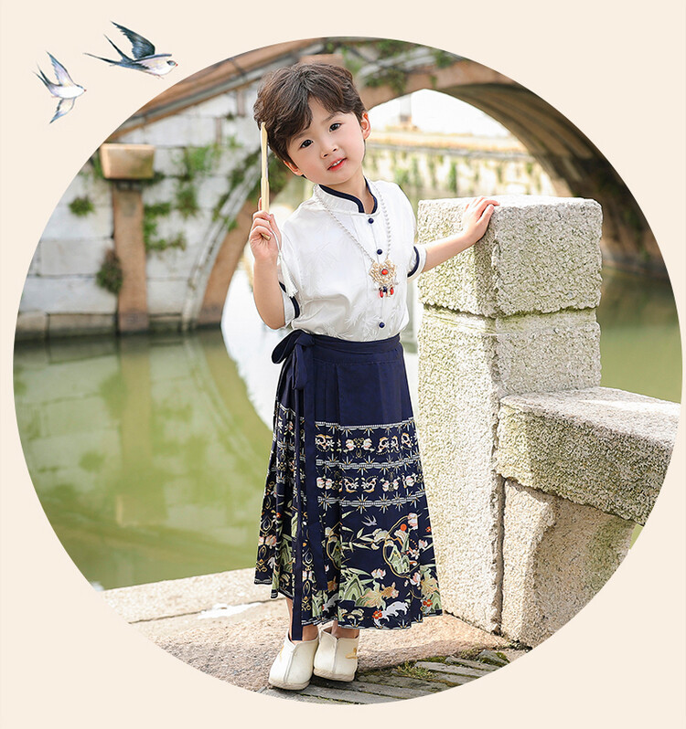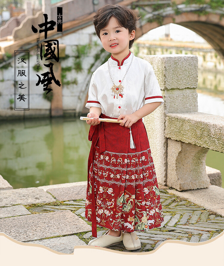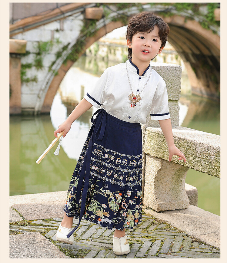 소년 여름 얇은 말 얼굴 치마 2025 새로운 어린이 고대 옷 한푸 중국 스타일 세트 아기 소녀 탕 세트스토어 가기