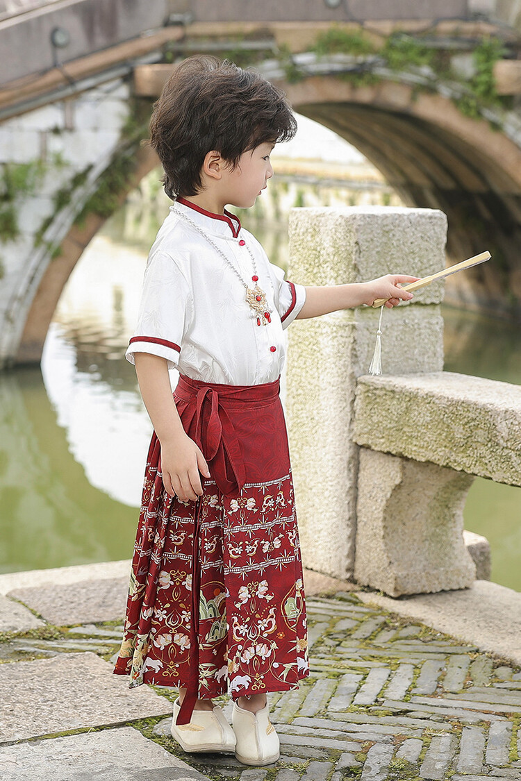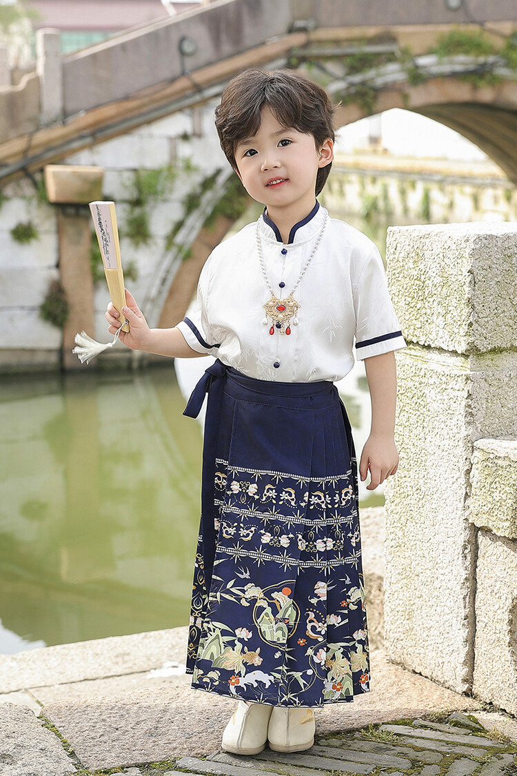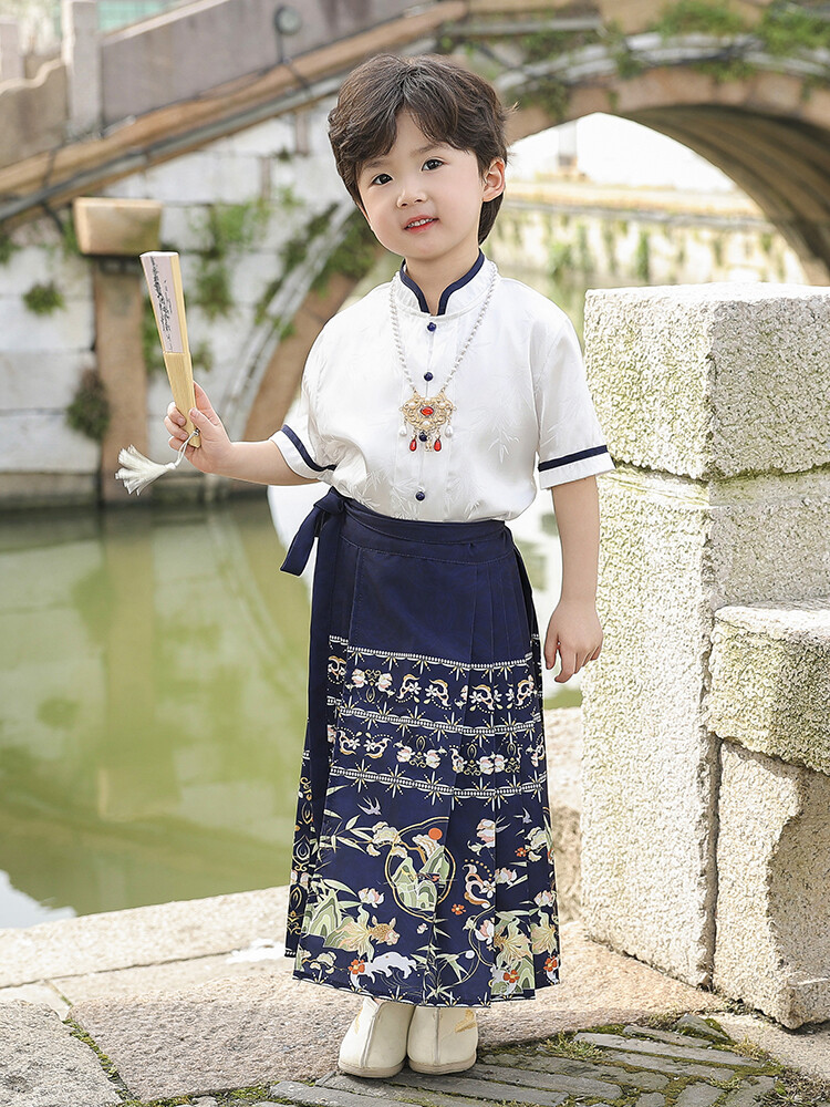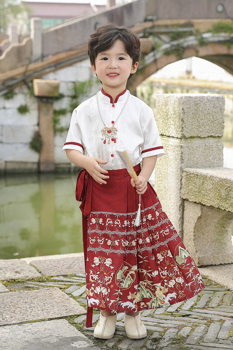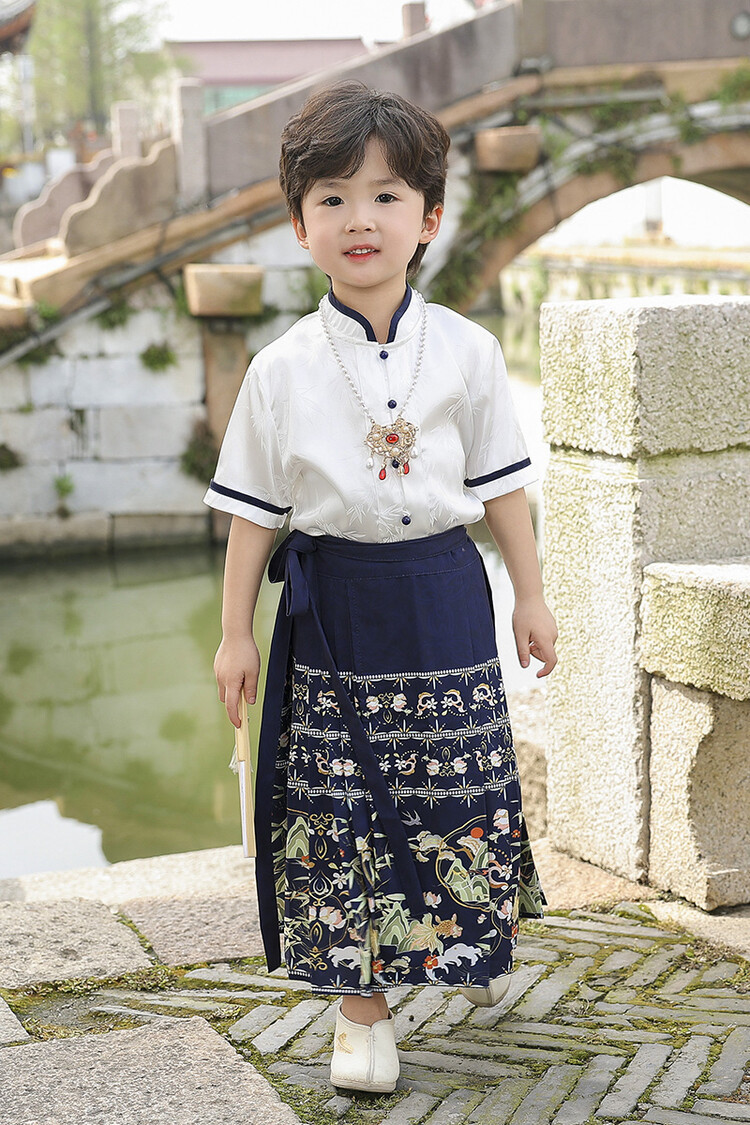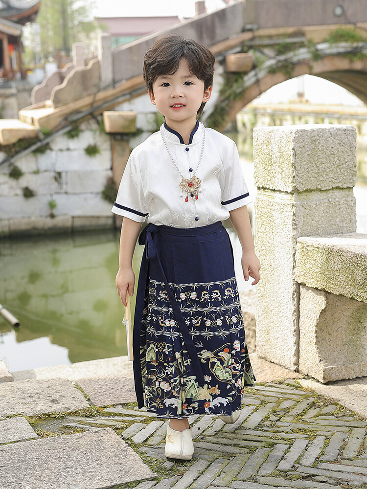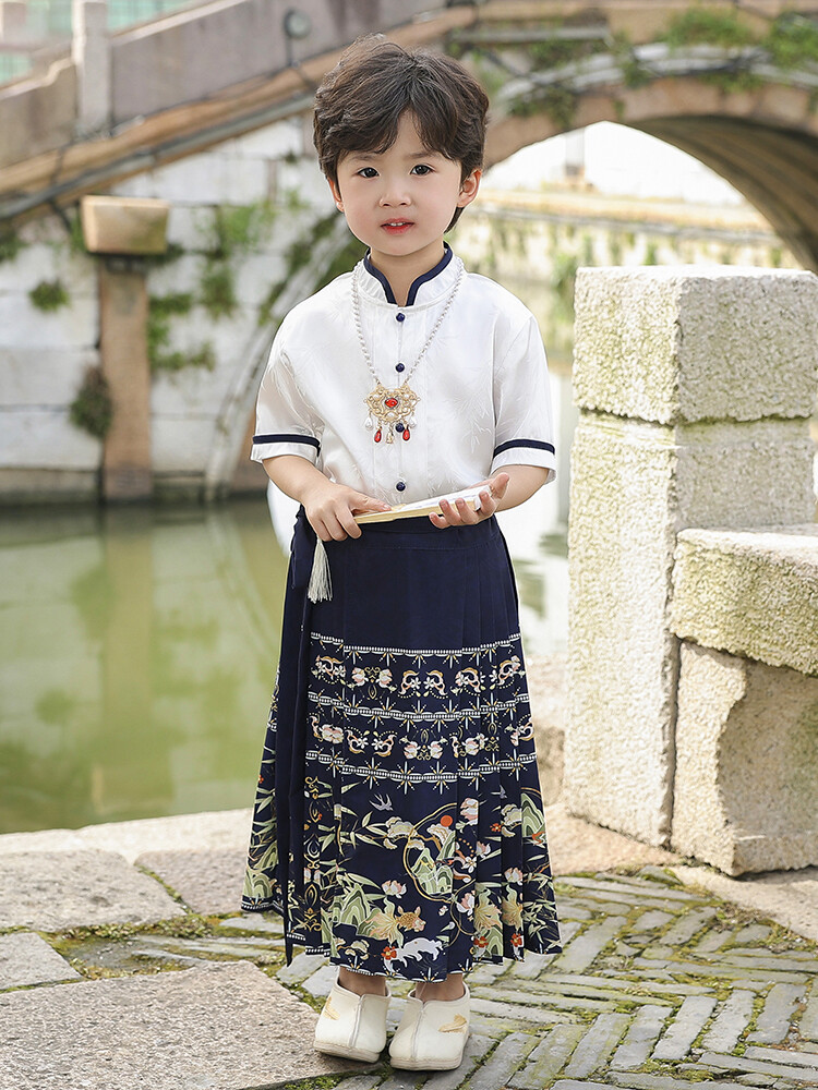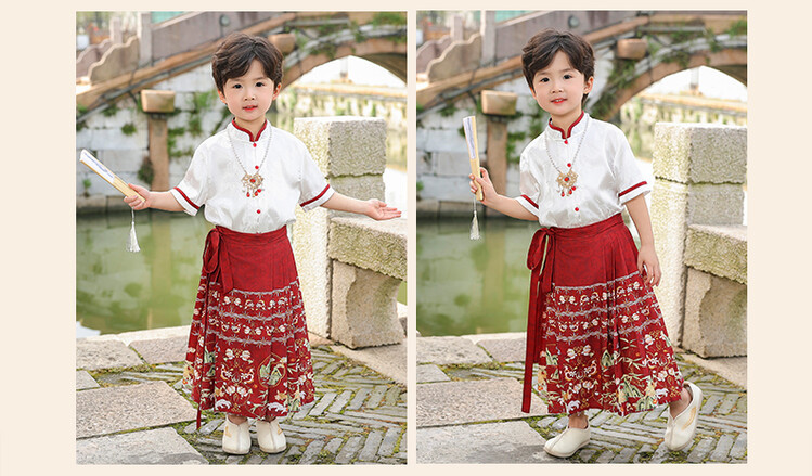 소년 여름 얇은 말 얼굴 치마 2025 새로운 어린이 고대 옷 한푸 중국 스타일 세트 아기 소녀 탕 세트스토어 가기