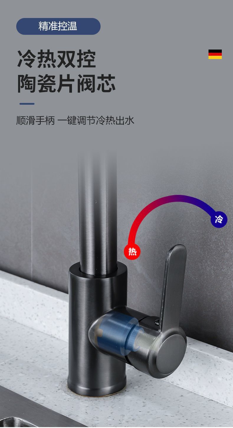 • 두꺼워진 클래식 스타일 - 브러시 처리 - 냉온수 듀얼 모드 물 배출