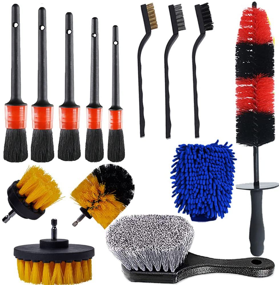 主图三15件套包含:汽车细节刷5件套+钢丝刷3件套+汽车轮毂刷+黄色海绵*2+蓝色空调出风口刷+雪尼尔手套+蓝色毛巾*2。一套重量:460g左右 32x18x13cm