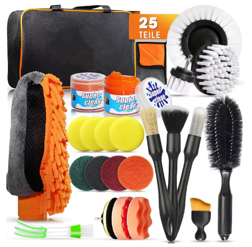 主图一16件套包含:2寸黑色钻刷+3.5寸黄色钻刷+4寸黄色钻刷+4寸白色钻刷+4寸橙色平面海绵+4寸橙色曲面海绵+4寸黄色粘盘+汽车细节刷5件套+雪尼尔手套+汽车空调出风口刷+蓝色毛巾*2。一套重量:640g左右