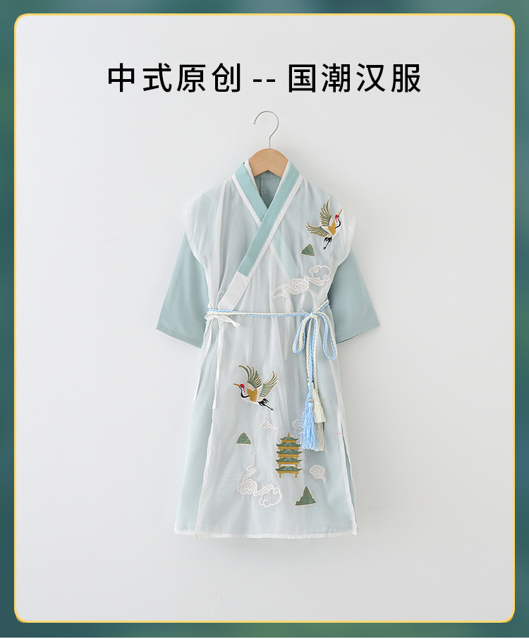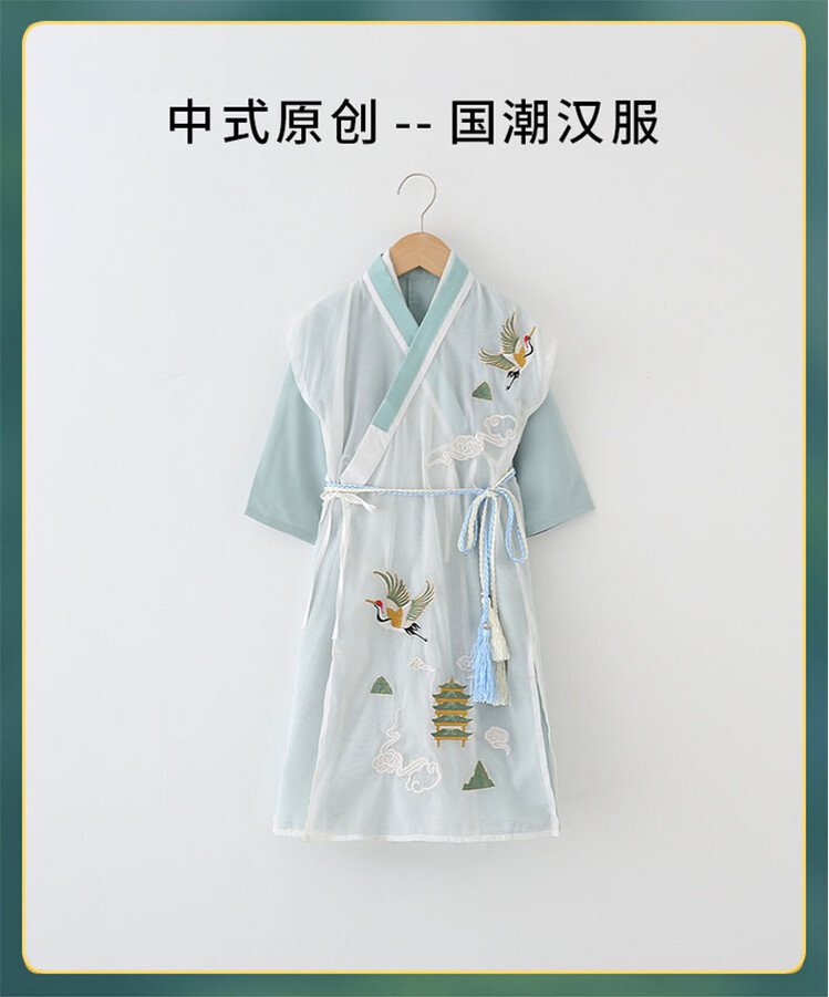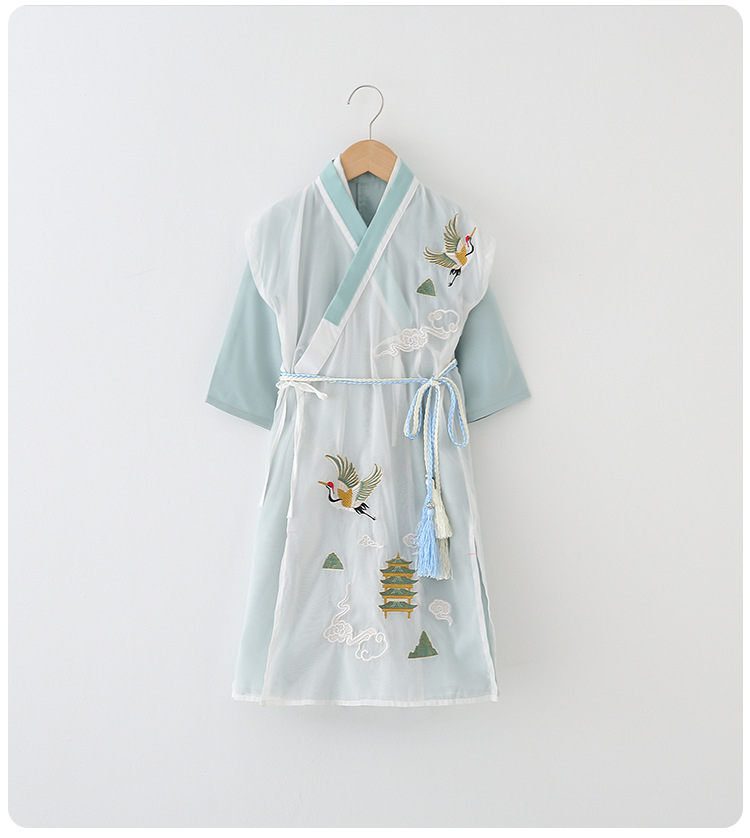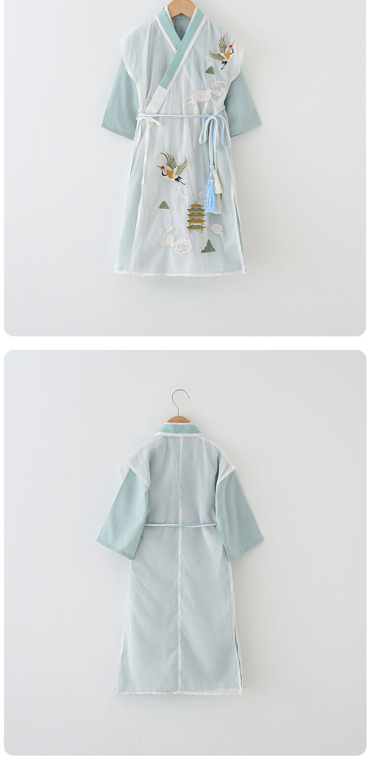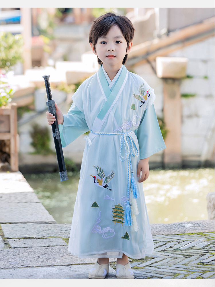 • 녹색 소년과 소녀 크레인 당나라 정장