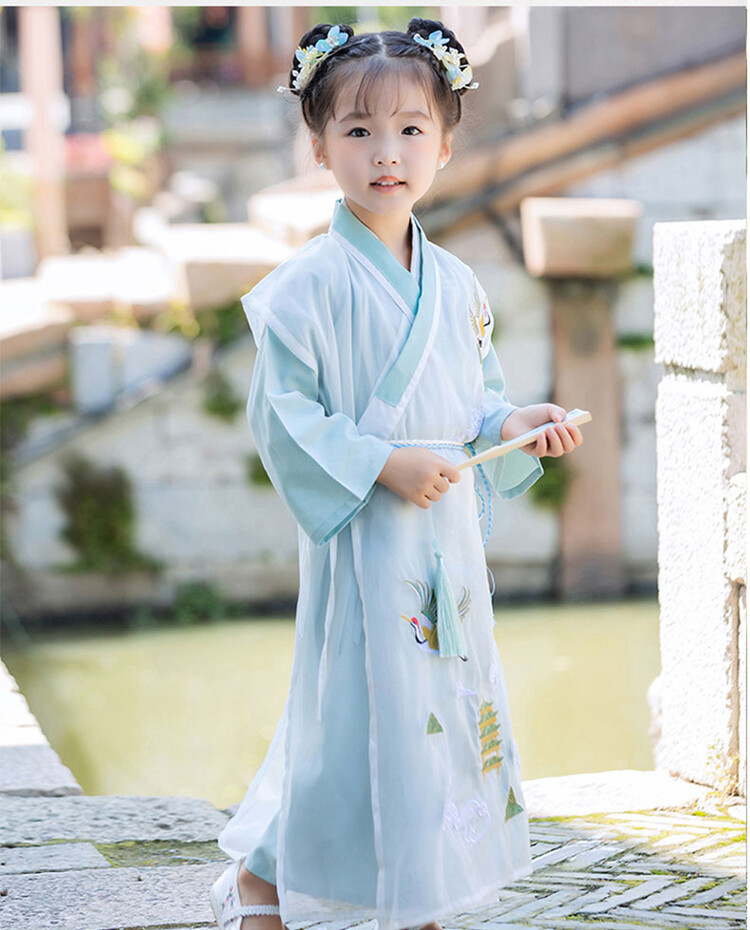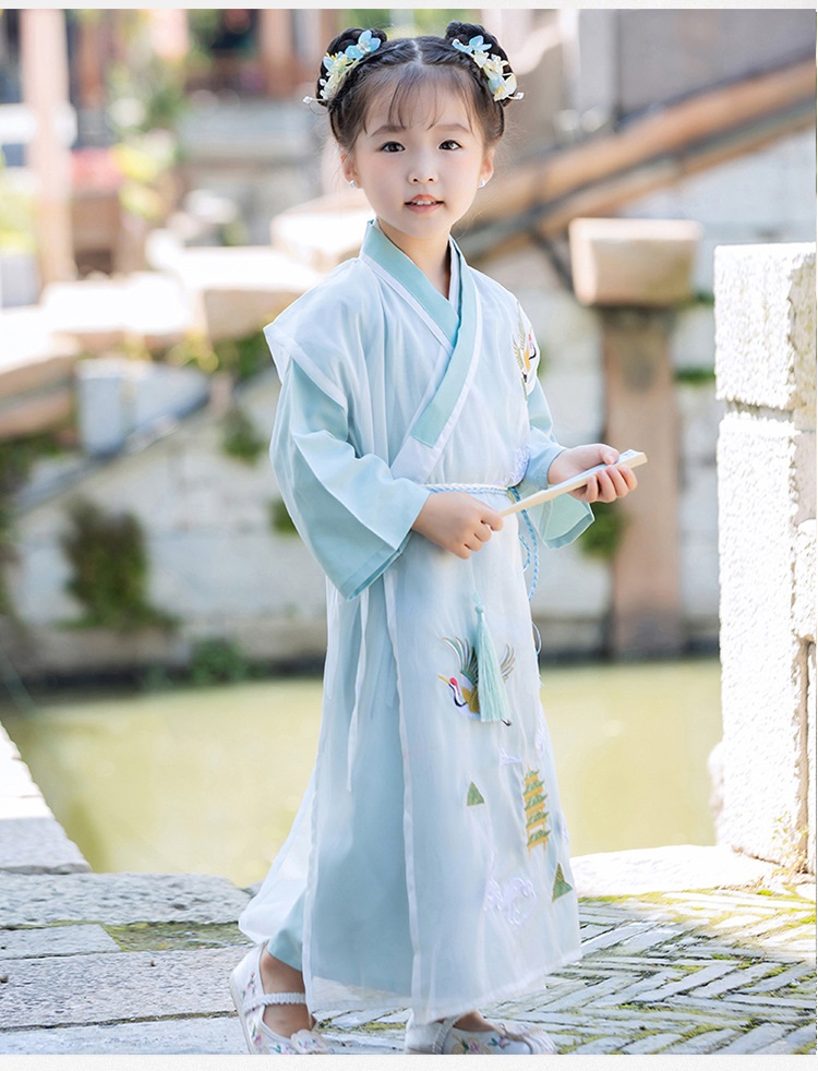어린이 긴 셔츠 한푸 소년의 봄과 가을 얇은 중국 스타일 소년의 고대 로브 탕 세트 우아한 어린이 공연 옷