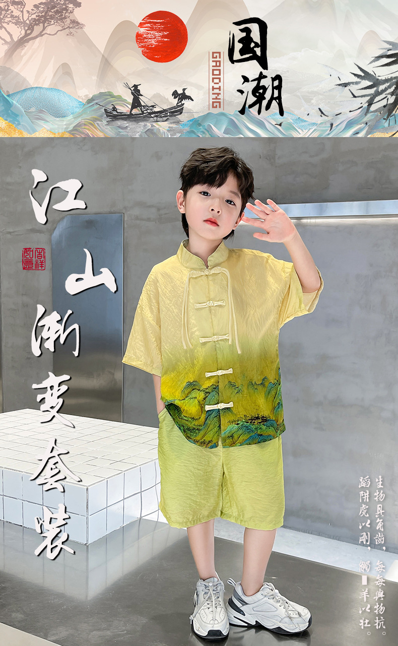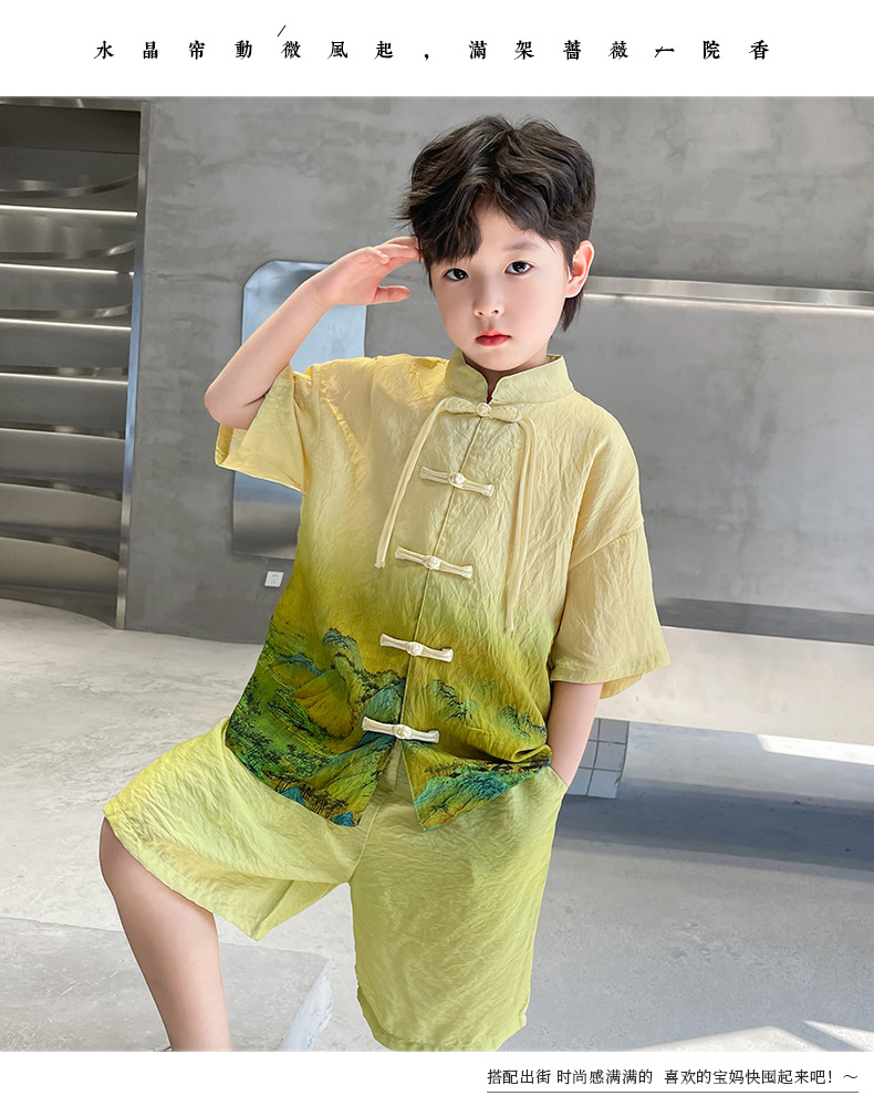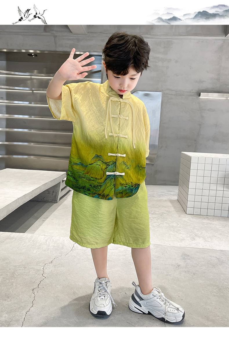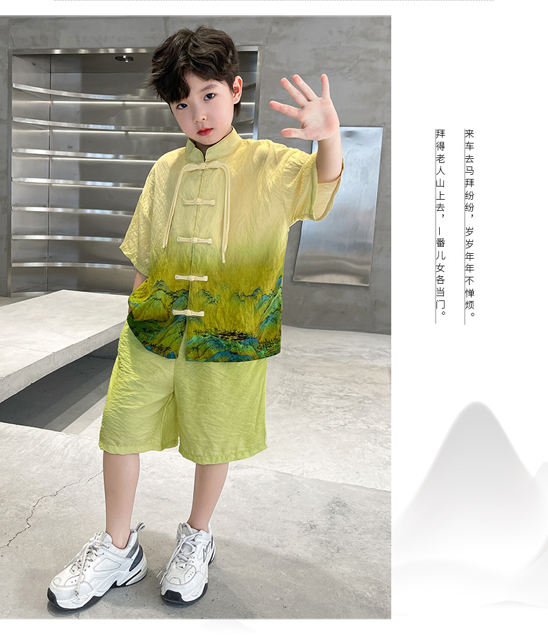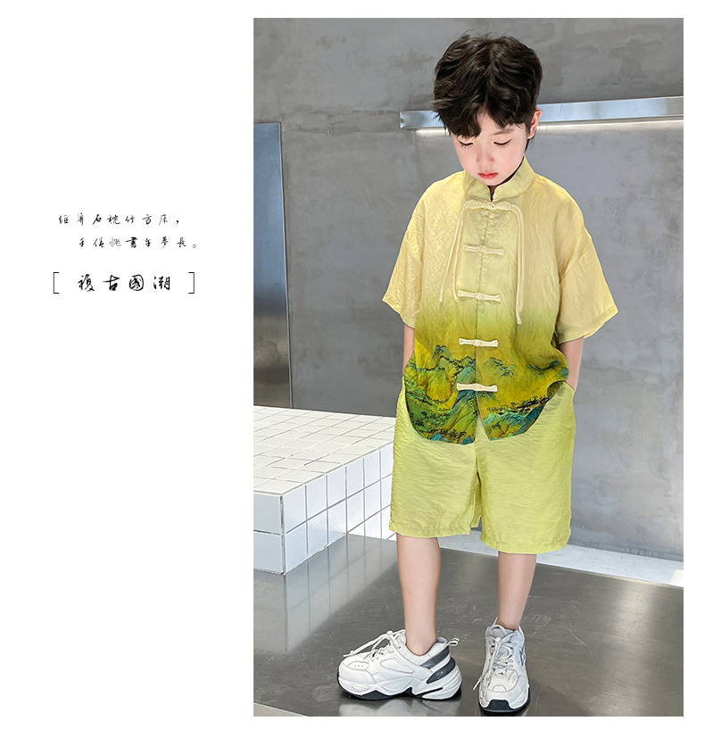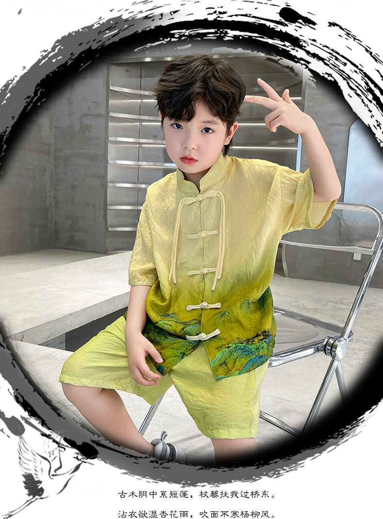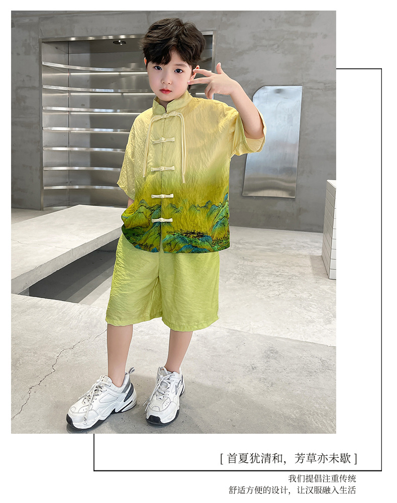 소년 한푸 세트 여름 2025 새로운 어린이 새로운 중국 당나라 세트 중국 스타일 얇은 큰 소년 여름스토어 가기