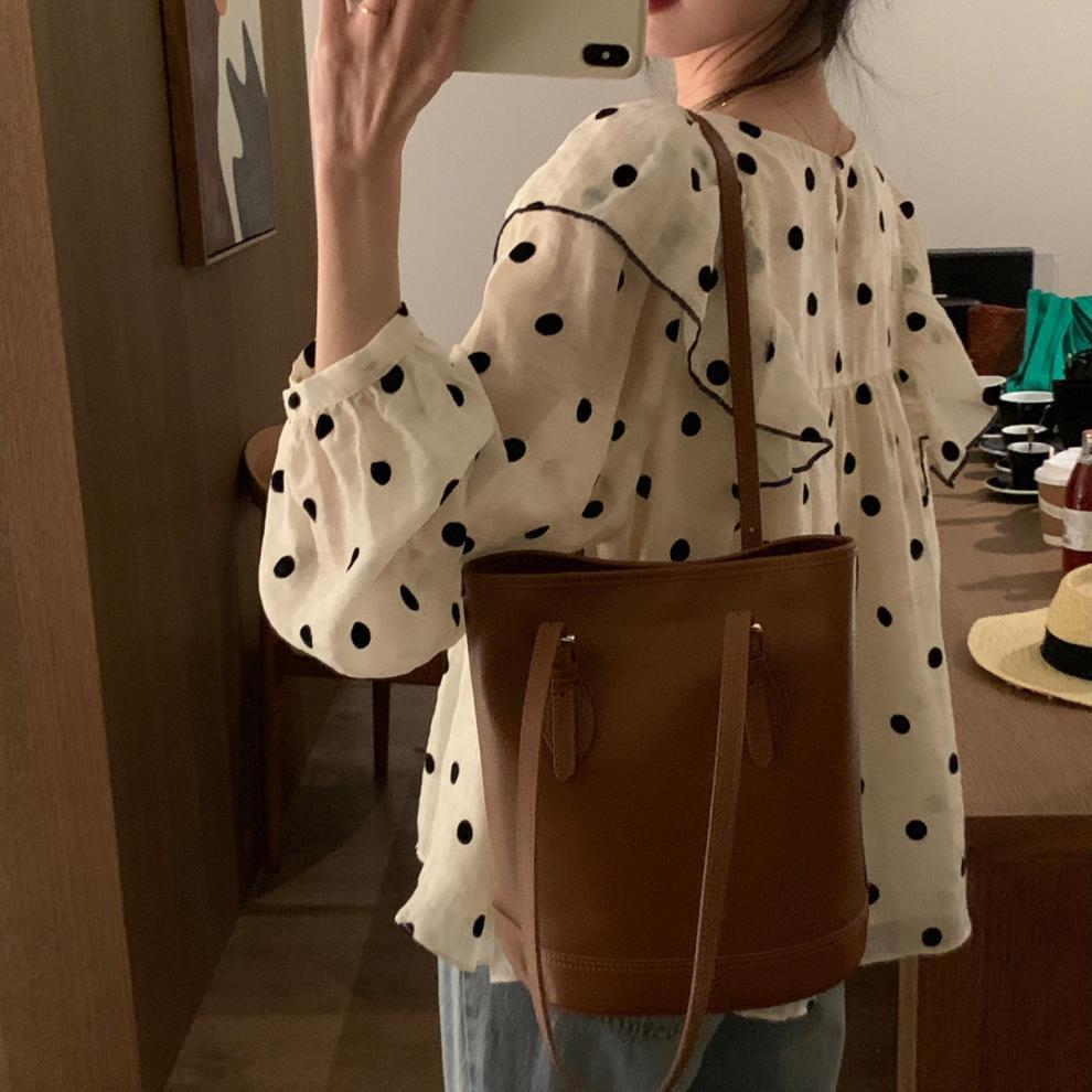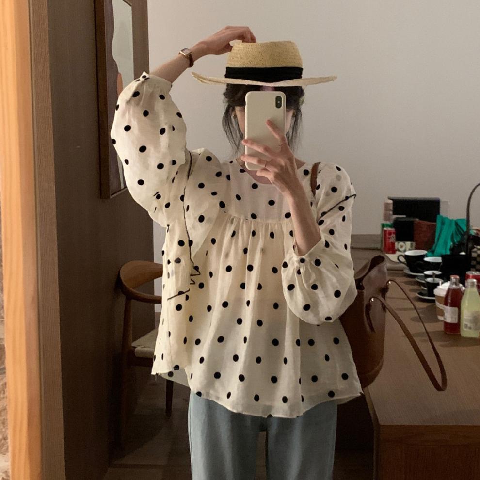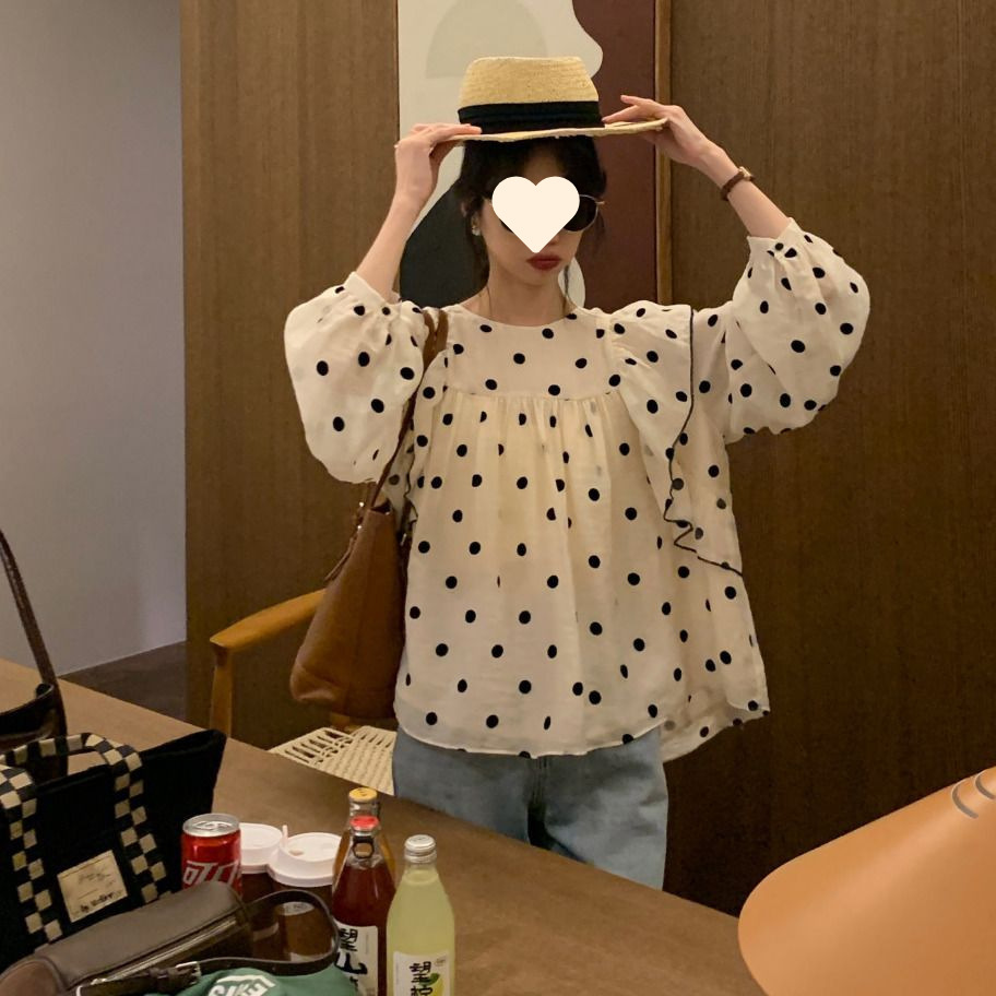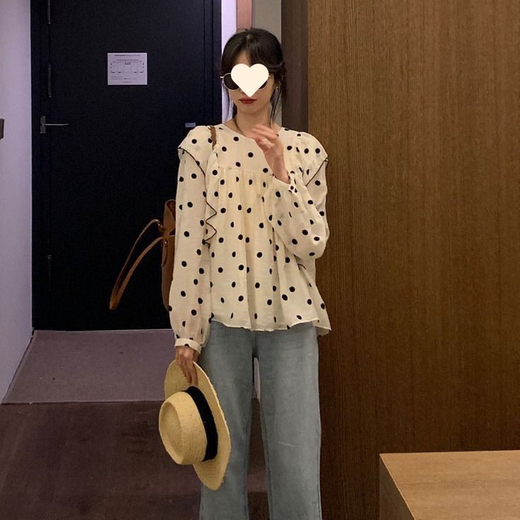 이른 가을 달콤한 세련된 귀 가장자리 웨이브 도트 셔츠 여성의 2024 외부 착용 디자인 센스 틈새 슬림 셔츠 긴 소매스토어 가기