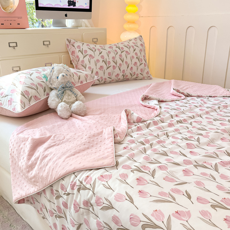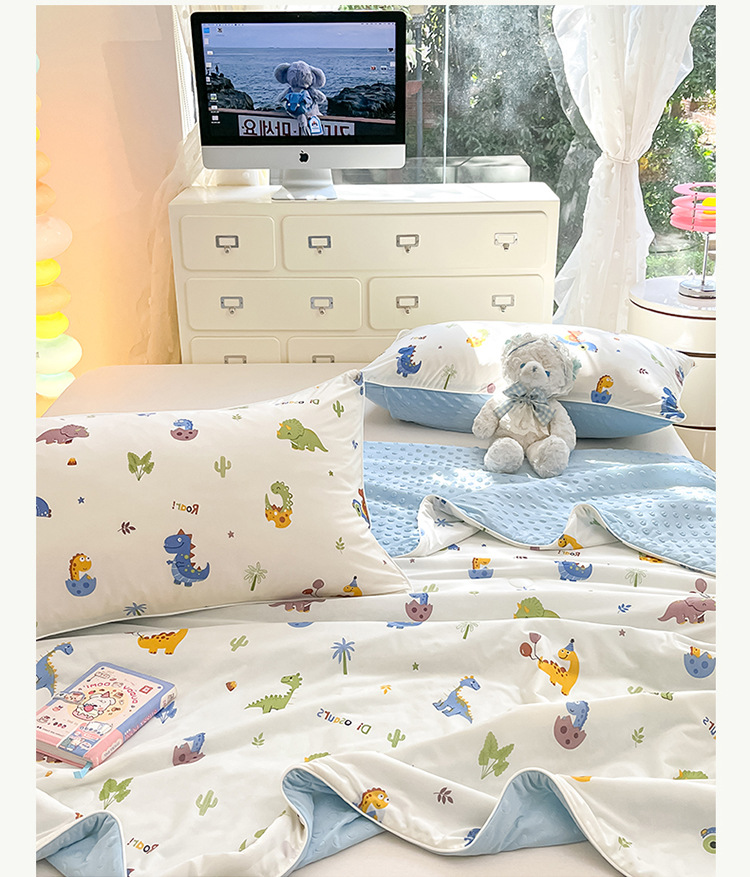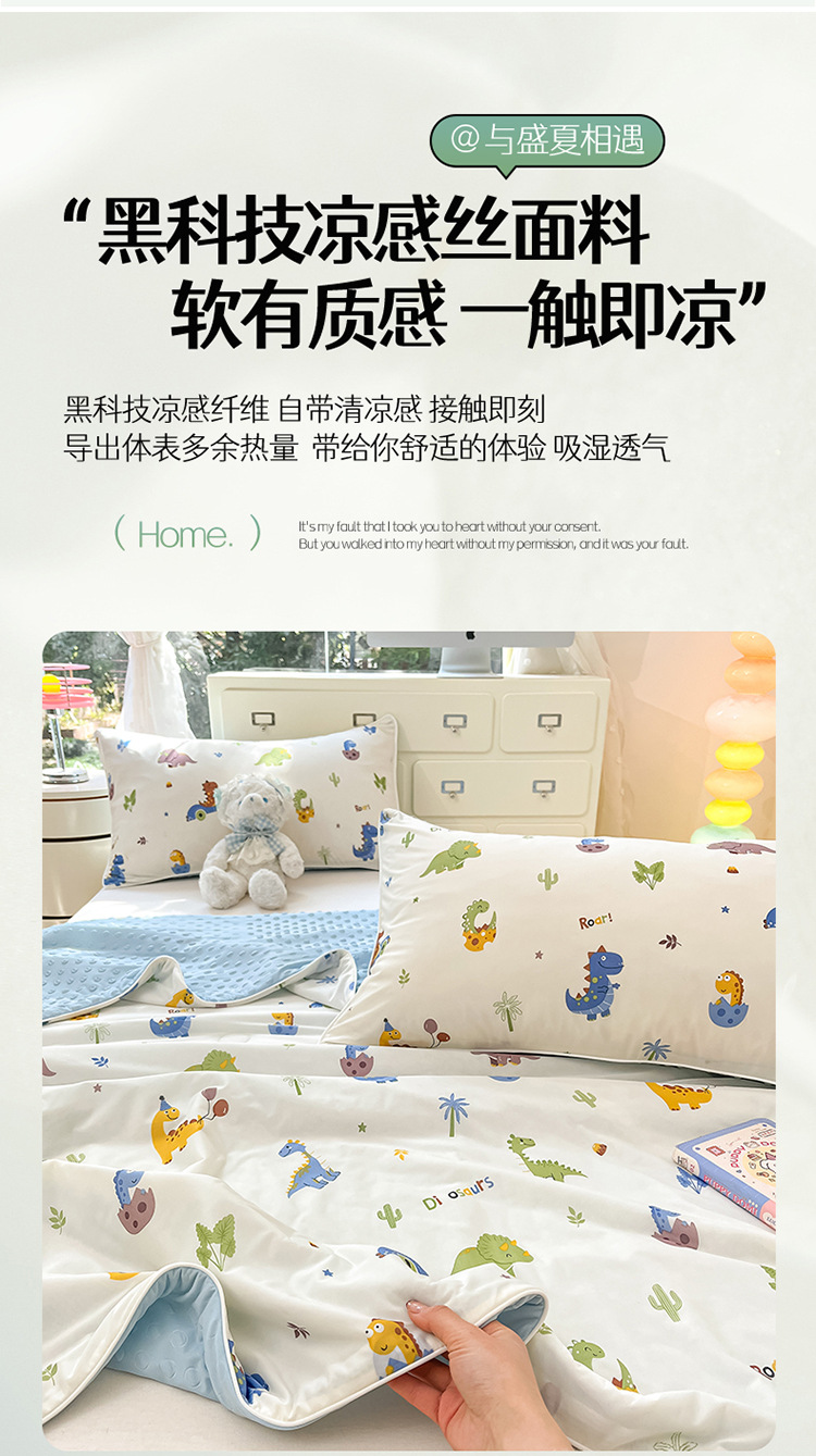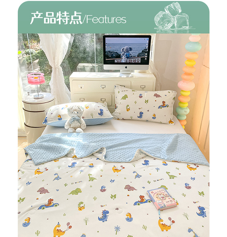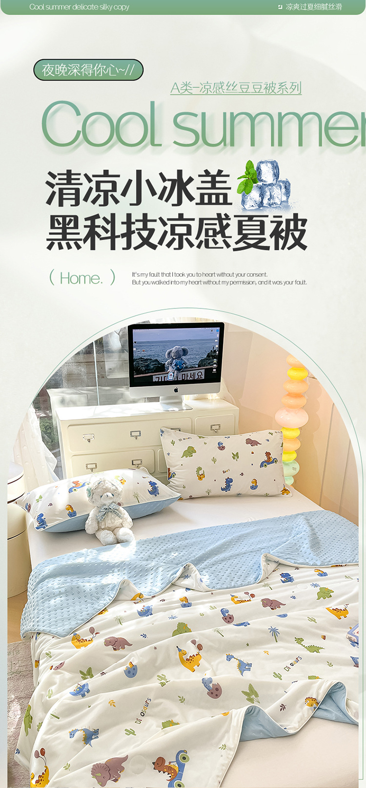 시원한 느낌 실크 아이스 실크 완두콩 이불 여름 시원한 이불 에어컨 이불 기계 빨 수있는 얇은 이불 코어 만화 어린이 이불스토어 가기