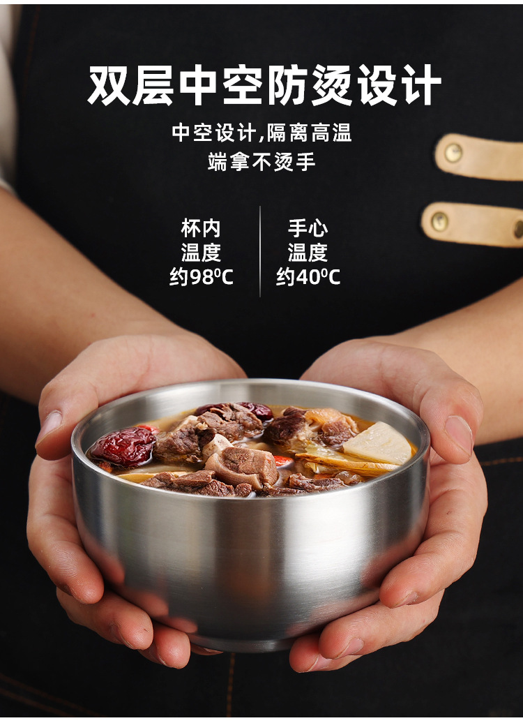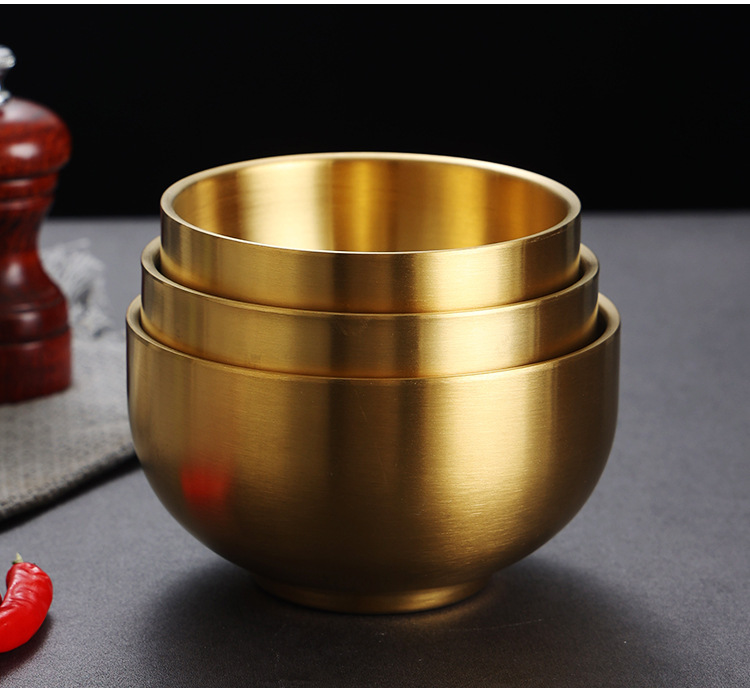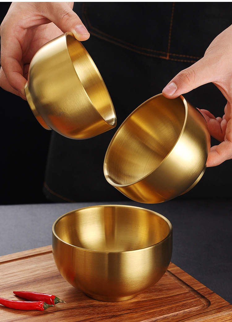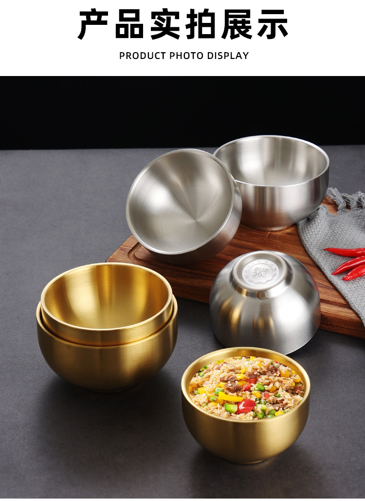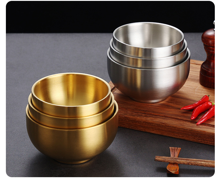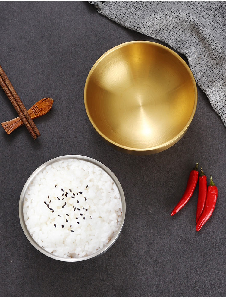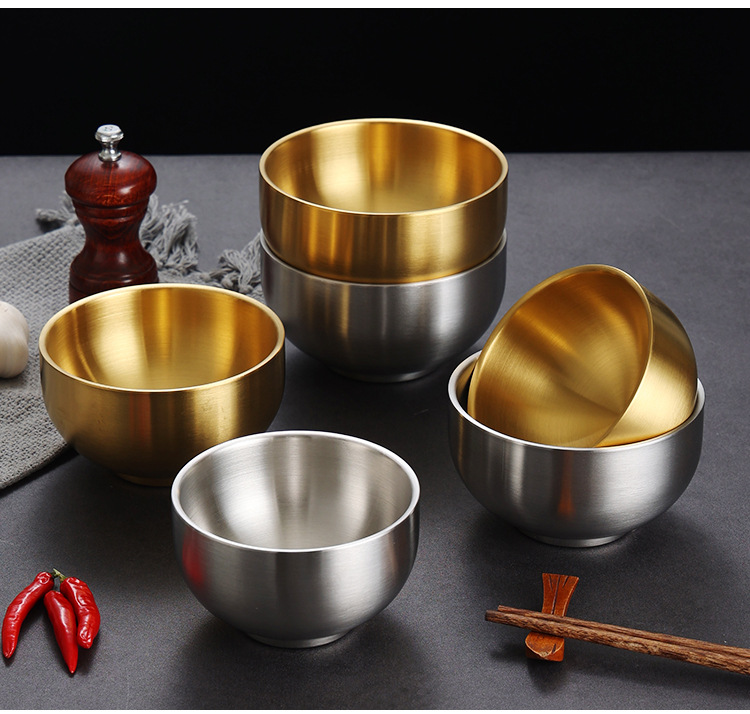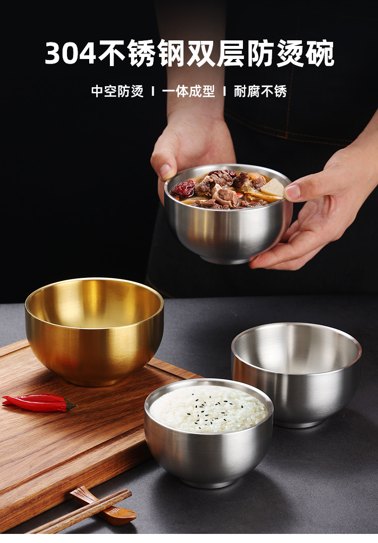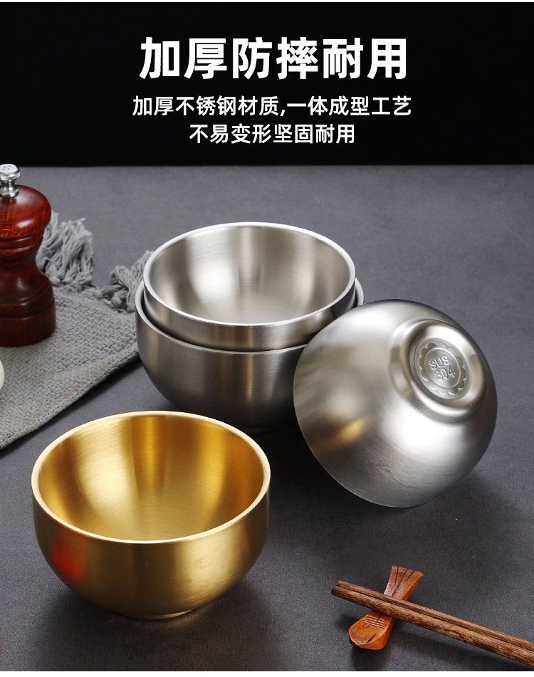 한국식 밥 그릇 304 스테인레스 스틸 밥 더블 레이어 안티 스케일 그릇 어린이 그릇 황금 조미료 그릇 레스토랑 수프 그릇스토어 가기