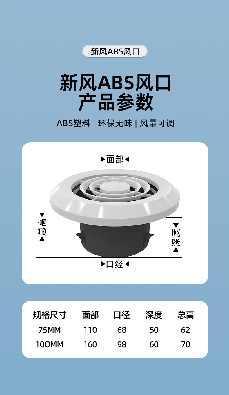 신선한 공기 시스템 둥근 공기 출구 공기 배출구 공기 공급 공기 출구 공기 입구 공기 출구 공기 커버 조절 가능한 공기량스토어 가기