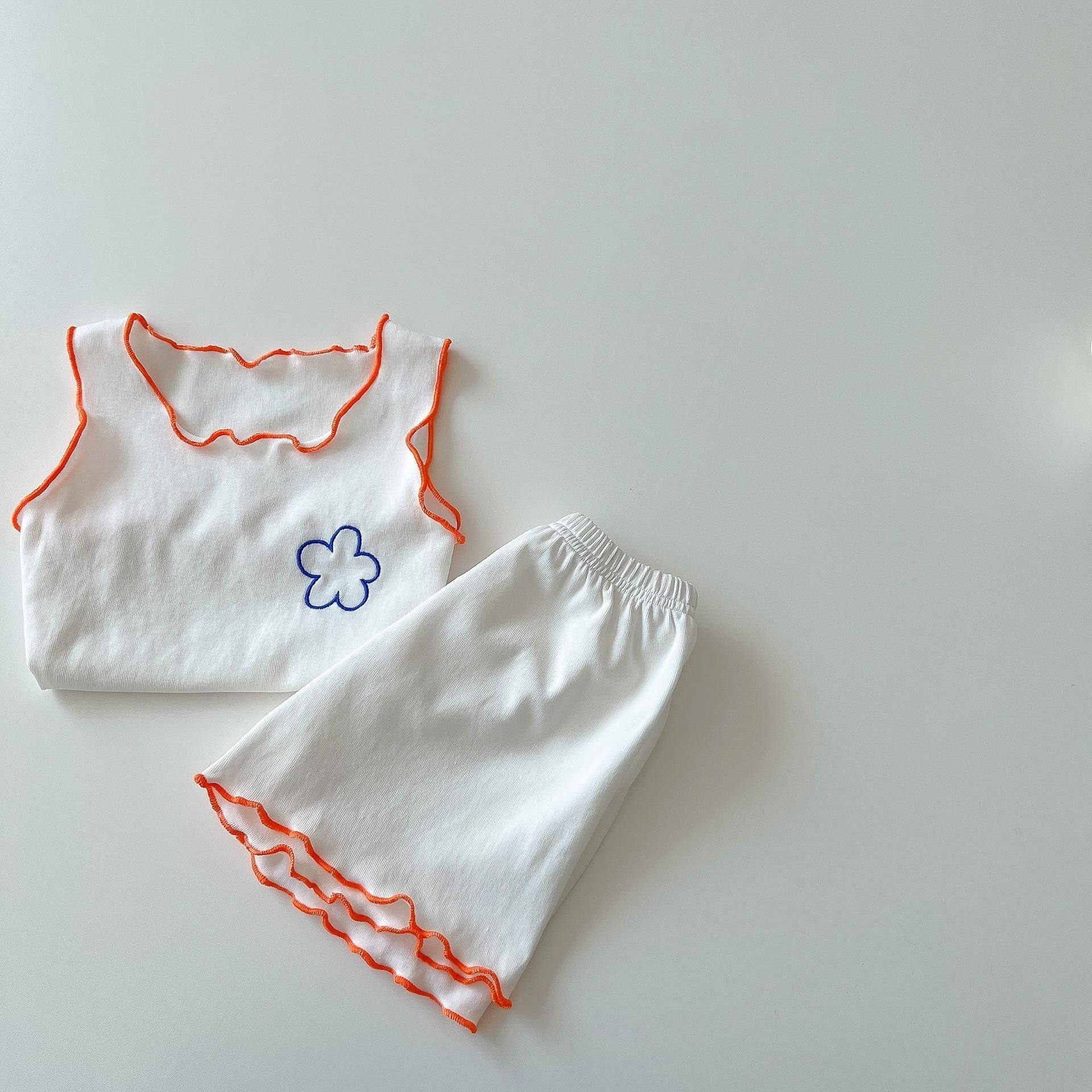 여름 소녀의 홈 의류 세트 아기의 서양식 어린이 맞춤형 트렌디 브랜드 꽃 귀 가장자리 조끼 반바지 파자마