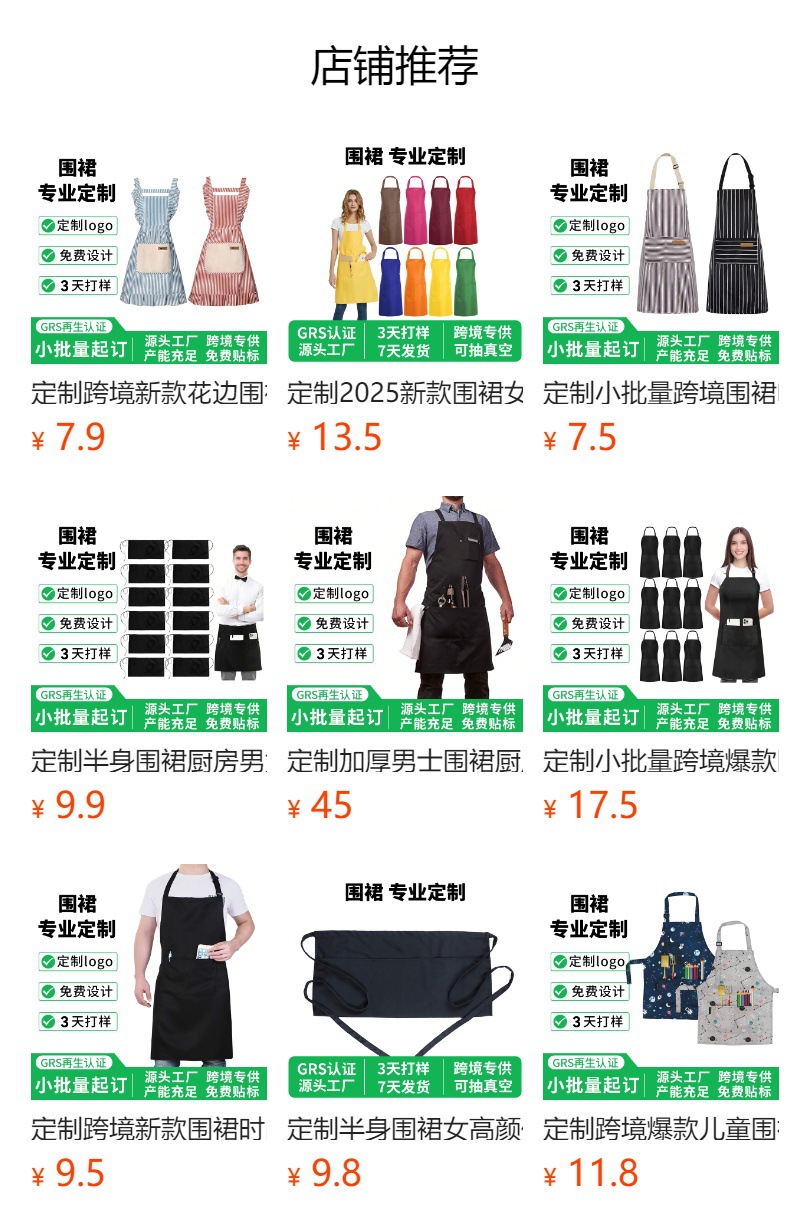 맞춤형 국경 간 앞치마, 세련되고 개인화 된 가정용 주방 커피숍 특수 작업복, 방수, 방오 및 방유 앞치마스토어 가기