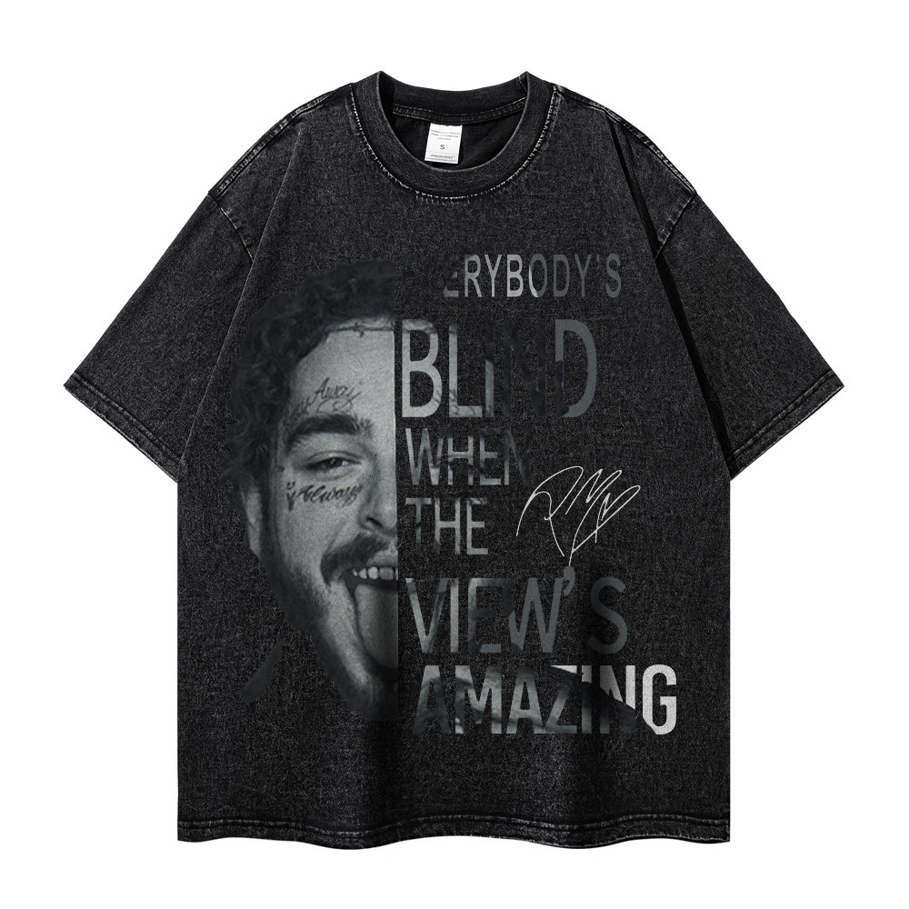 미국 스타일의 하이 스트리트 캐릭터 편지 인쇄 세척 물 반팔 티셔츠 남성 인스 타 그램 스타일 여름 캐주얼 라운드 넥 반소매 탑 트렌디