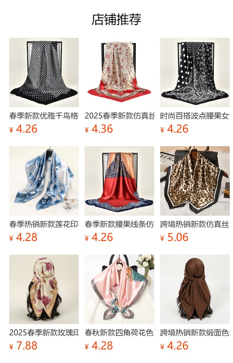 봄 새로운 스타일의 캐슈 너트 프린트 컬러 스퀘어 스카프 여성 패션 실크 스카프 패션 다목적 목도리 터번스토어 가기