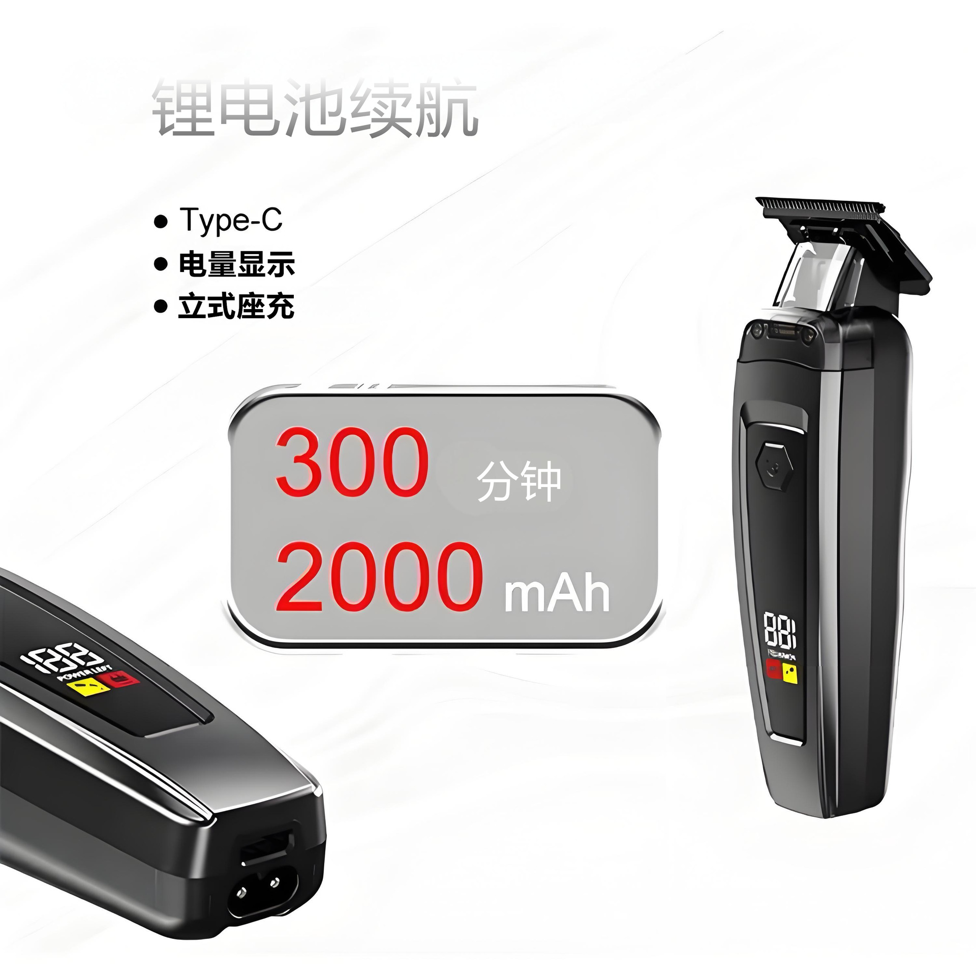 充电方式:Type-C/8字尾双插口、USB充电、带充电座