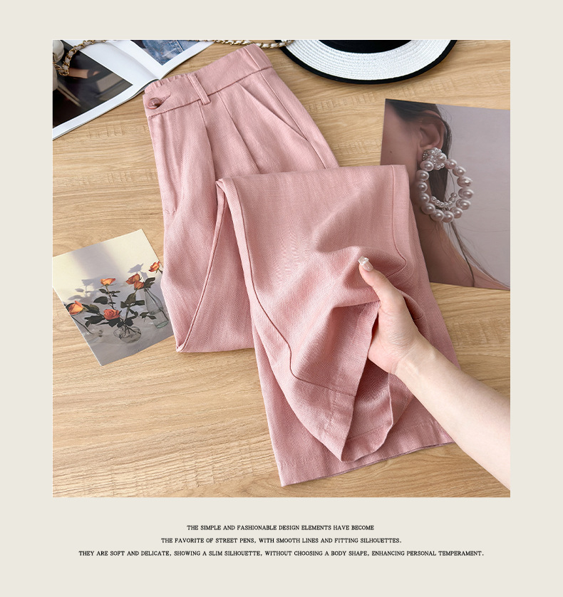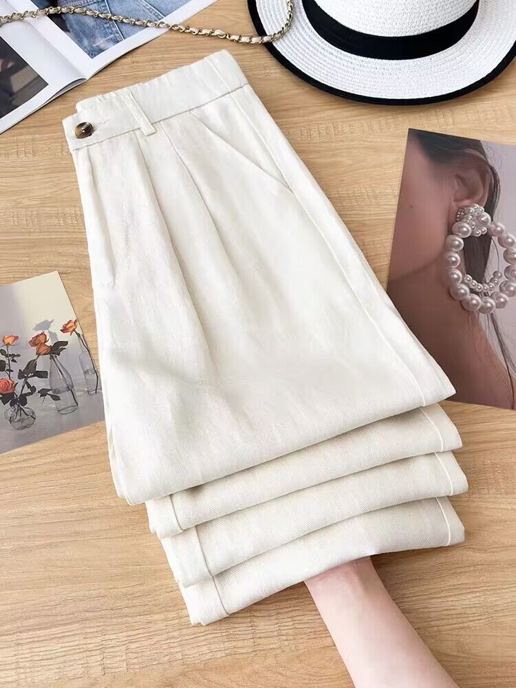天丝亚麻阔腿裤女夏季薄款2024新款高腰垂感棉麻长裤苎麻直筒裤子