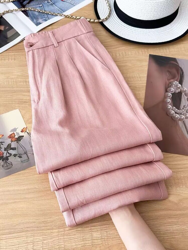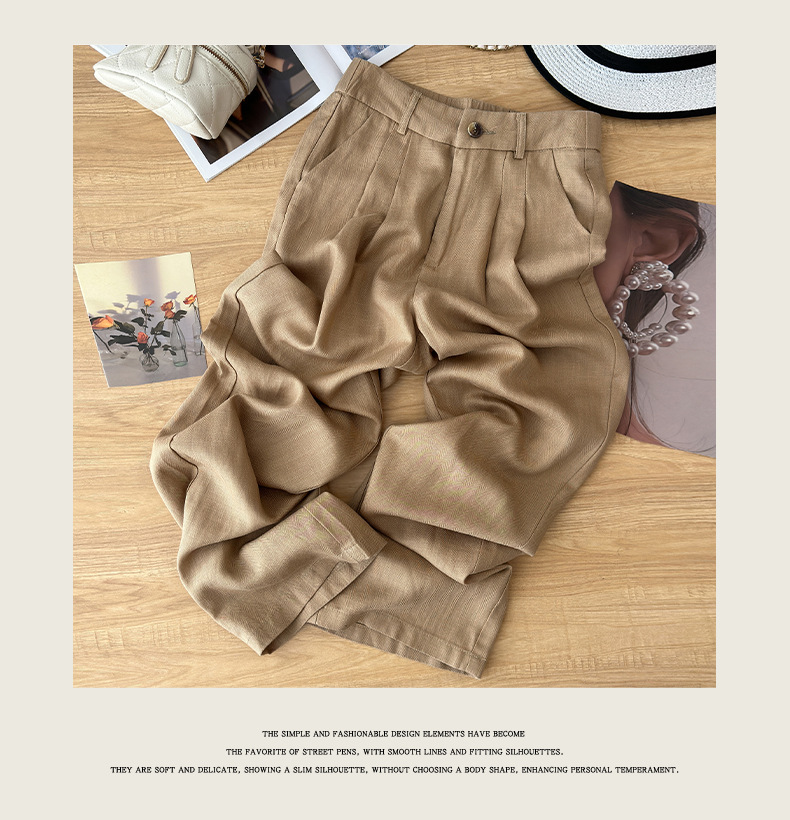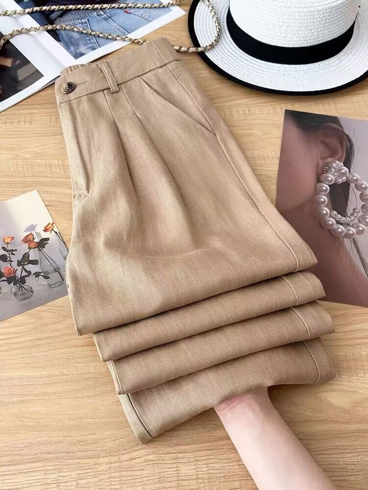 Tencel Linen 와이드 레그 팬츠 여성용 여름 얇은 2025 새로운 하이 웨이스트 다운 코튼 및 리넨 바지 라미 스트레이트 팬츠스토어 가기
