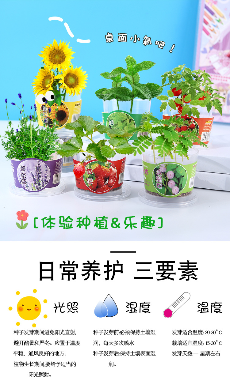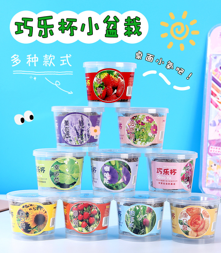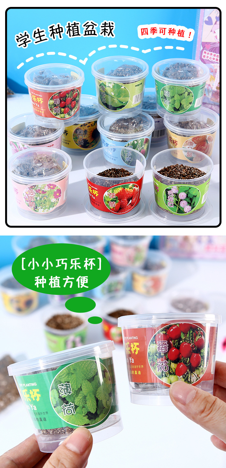 Qiao Qiao Cup 냄비 어린이 수경 녹색 식물 데스크탑 재미있는 관찰 학생 심기 실험 재료 패키지