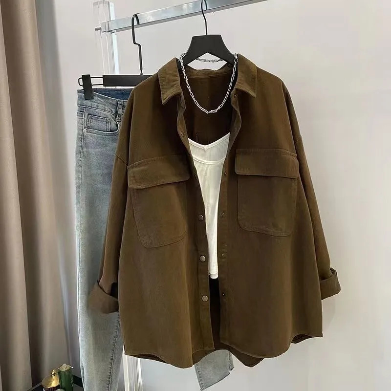 서양식 느슨한 셔츠 재킷 여성의 2025 봄 새로운 한국 스타일 슬림 룩 캐주얼 올 매치 패션 스택 탑