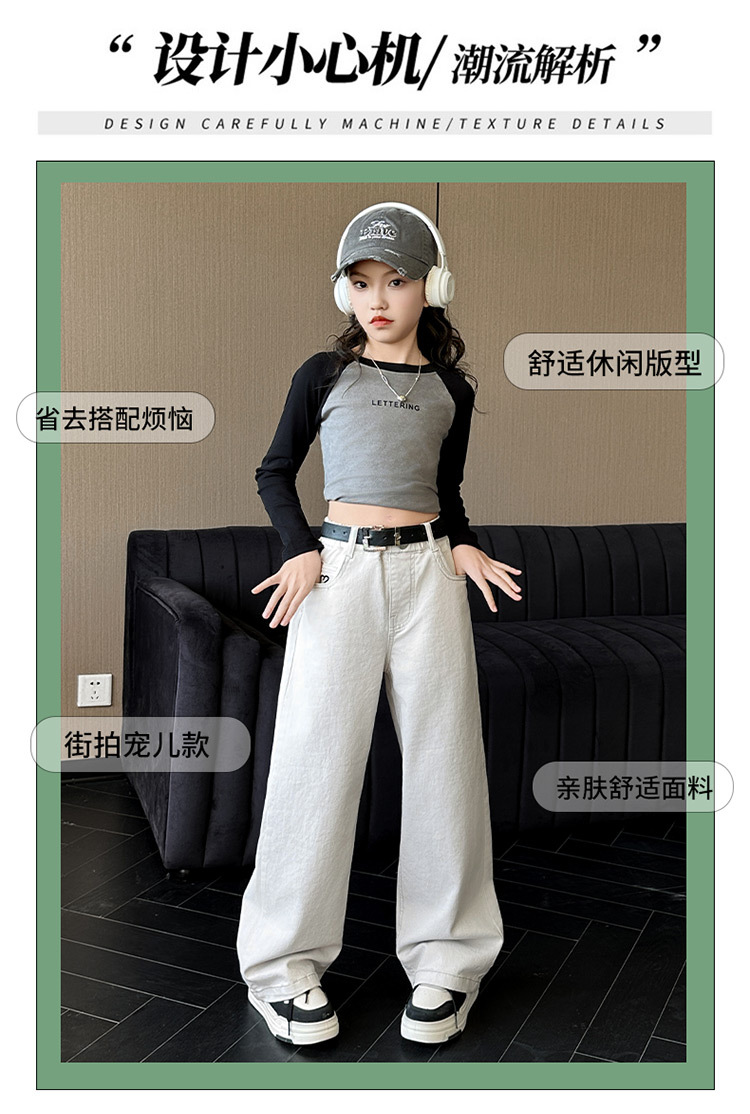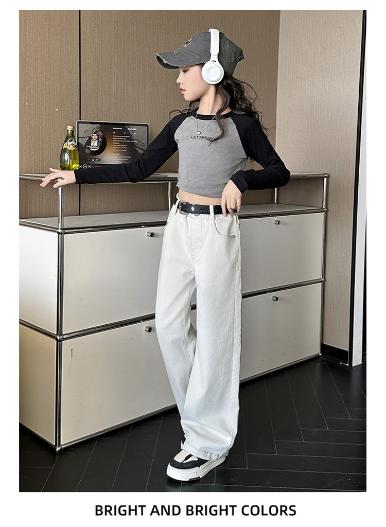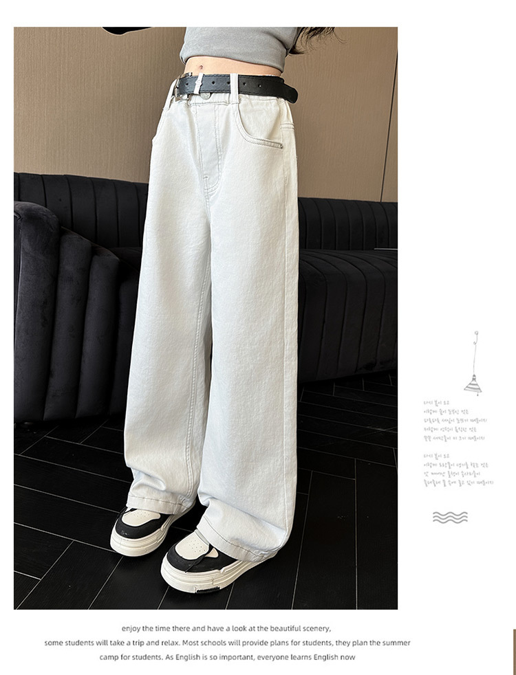 여자 봄 넓은 다리 바지 2025 새로운 한국 스타일 중 큰 아이 스타일 스트레이트 다리 바지 캐주얼 느슨한 바지