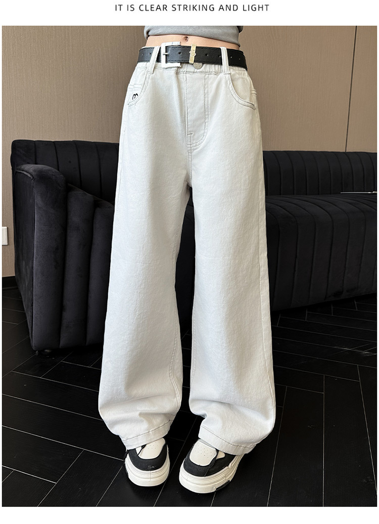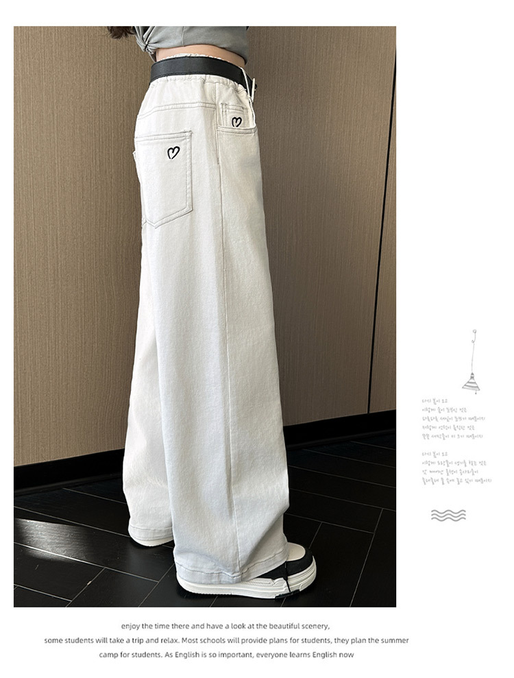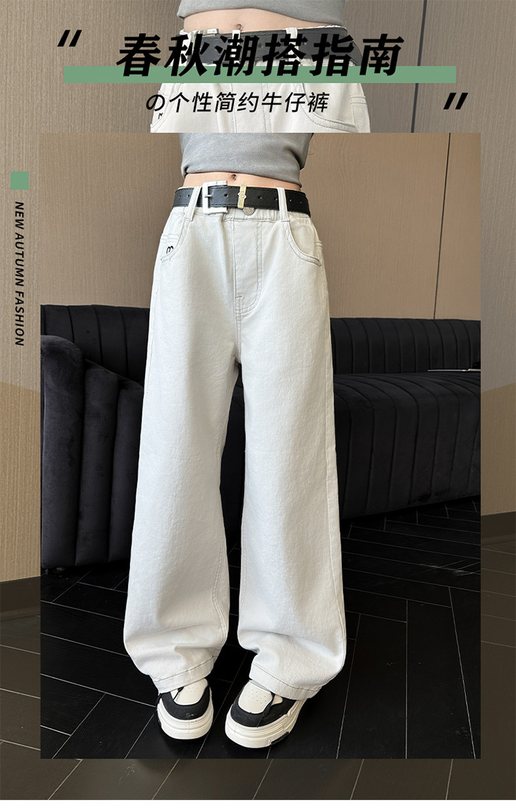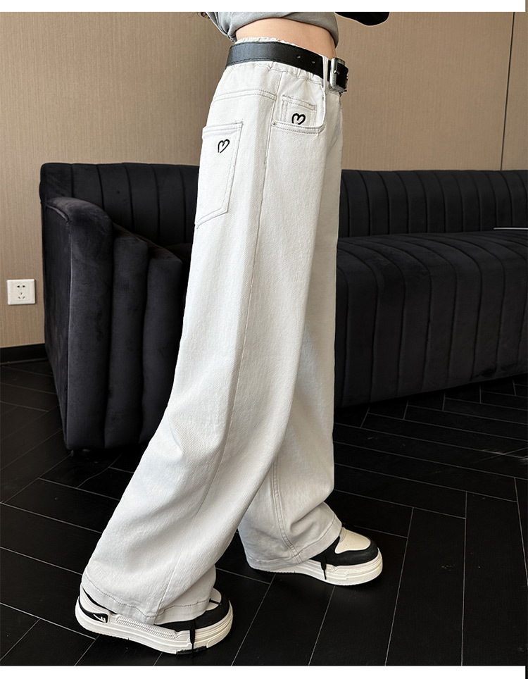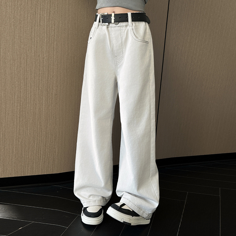 여자 봄 넓은 다리 바지 2025 새로운 한국 스타일 중 큰 아이 스타일 스트레이트 다리 바지 캐주얼 느슨한 바지스토어 가기