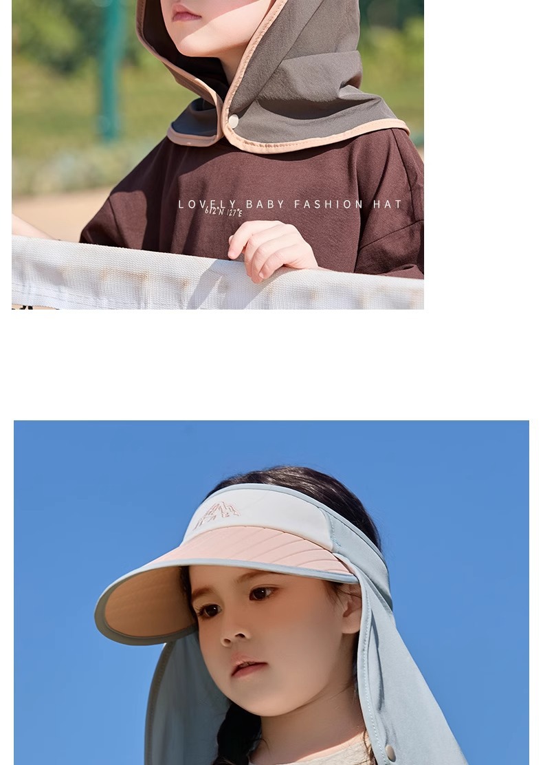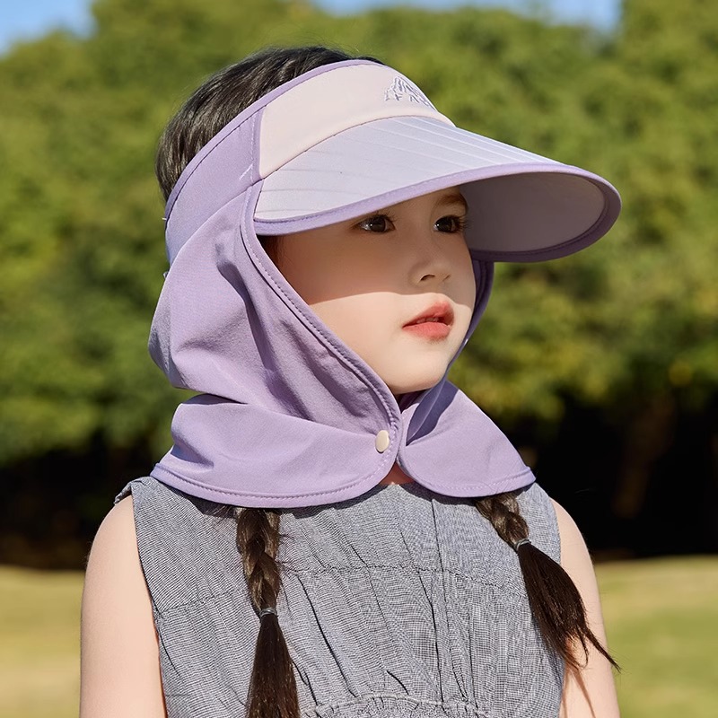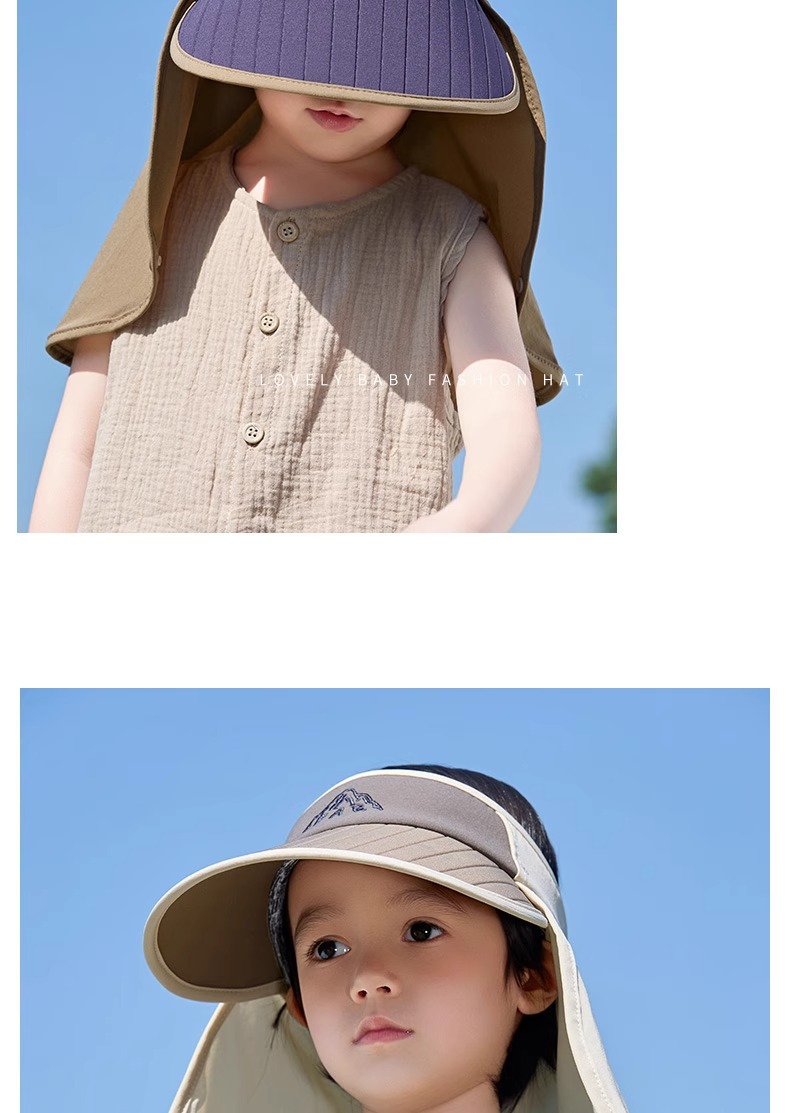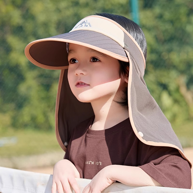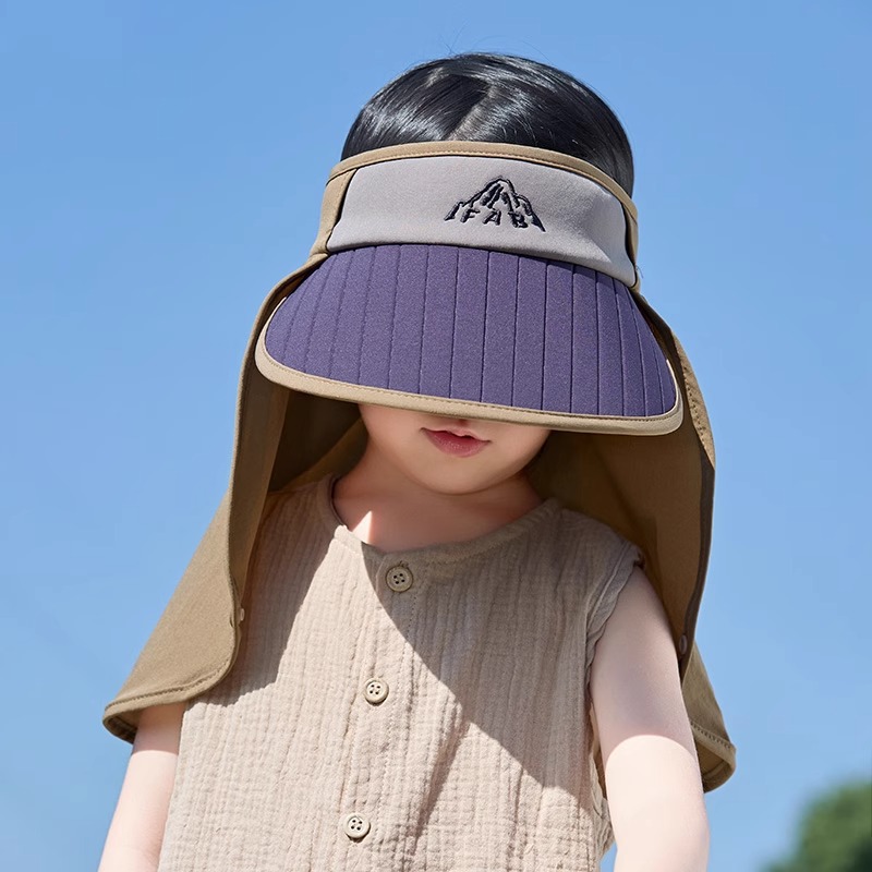 어린이 모자 선 스크린 여름 소년 빈 탑 대비 컬러 큰 챙이 목도리 모자 UV 보호 아기 소녀의 태양 모자