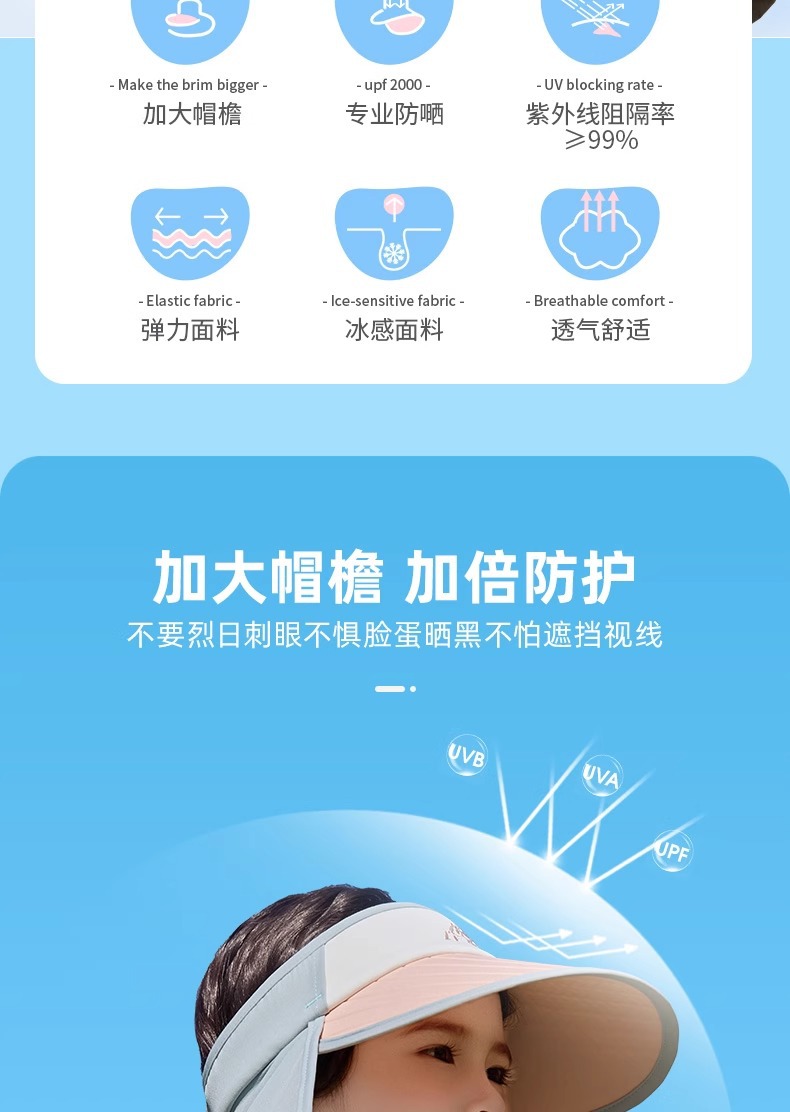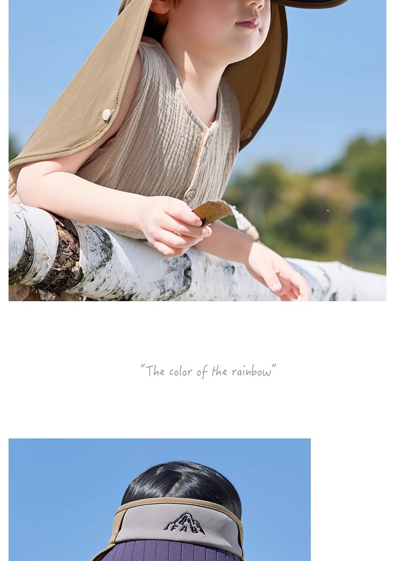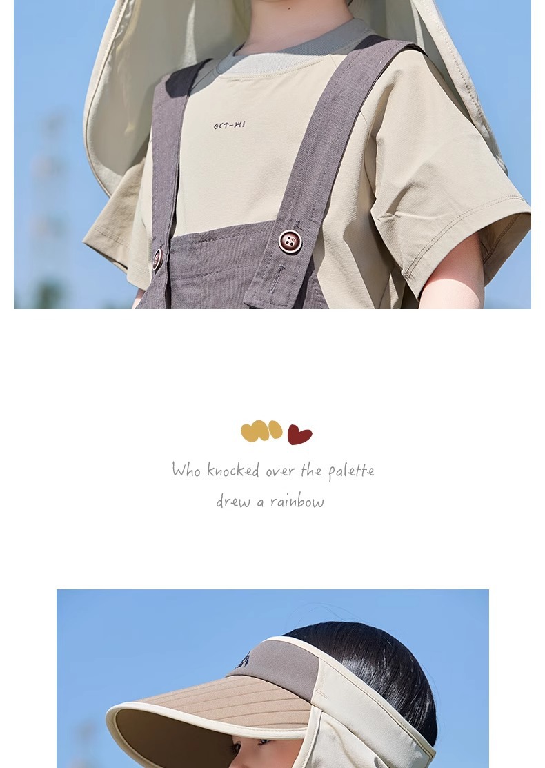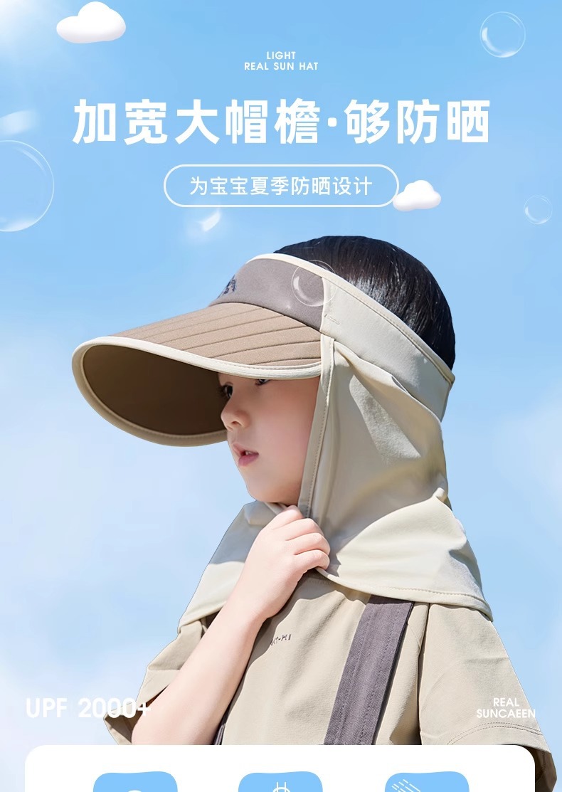 어린이 모자 선 스크린 여름 소년 빈 탑 대비 컬러 큰 챙이 목도리 모자 UV 보호 아기 소녀의 태양 모자