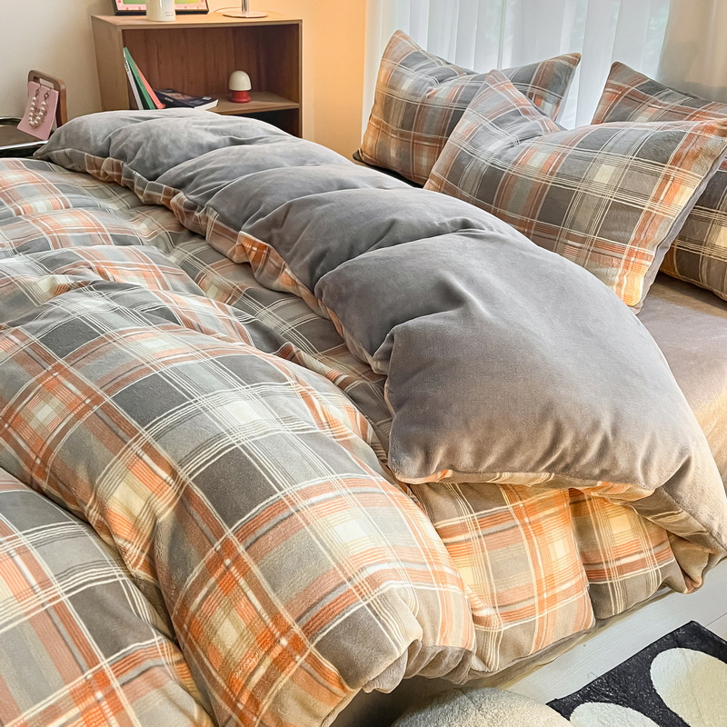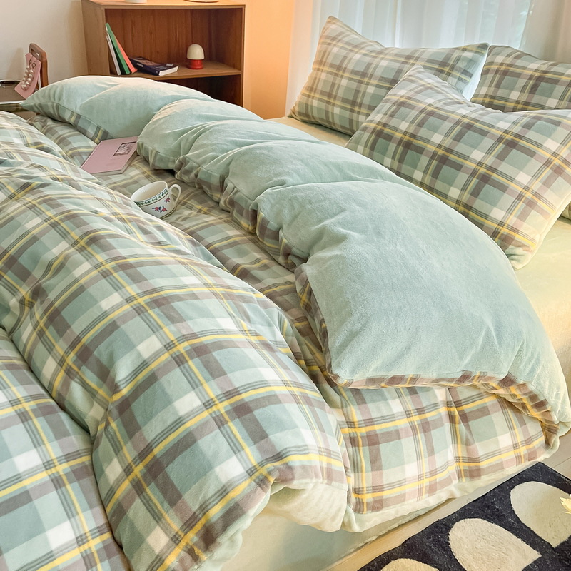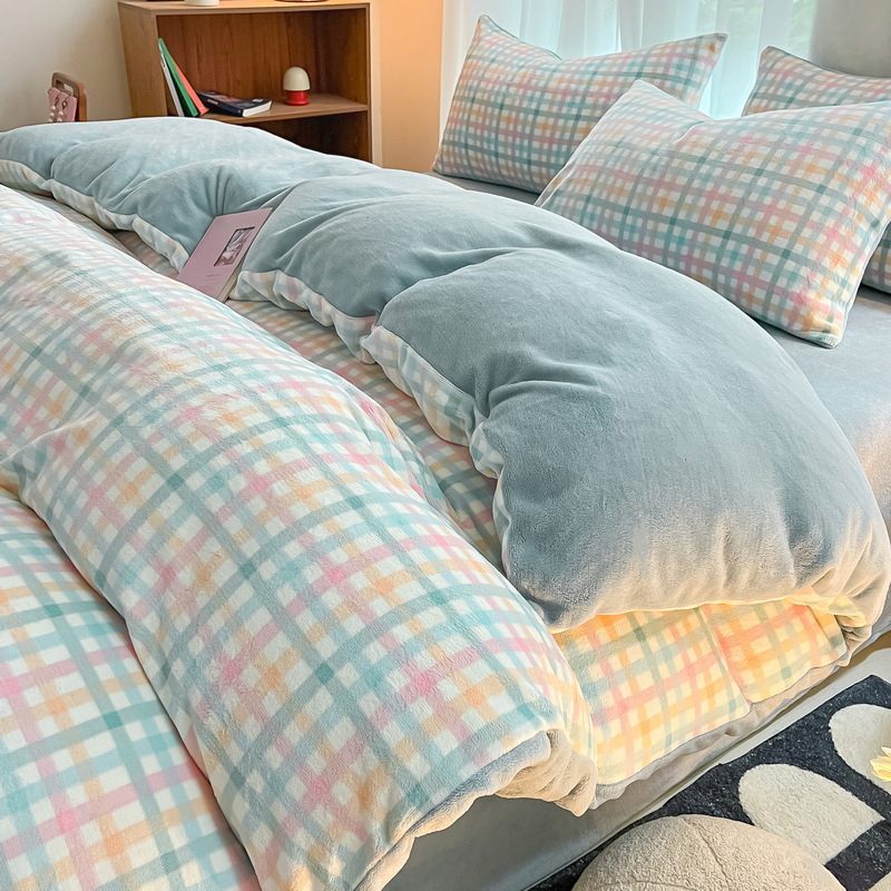 클래스 새로운 간단한 두꺼운 우유 벨벳 4 피스 세트 바람 산호 벨벳 패딩 침대 시트 3 피스 세트 침대 시트스토어 가기