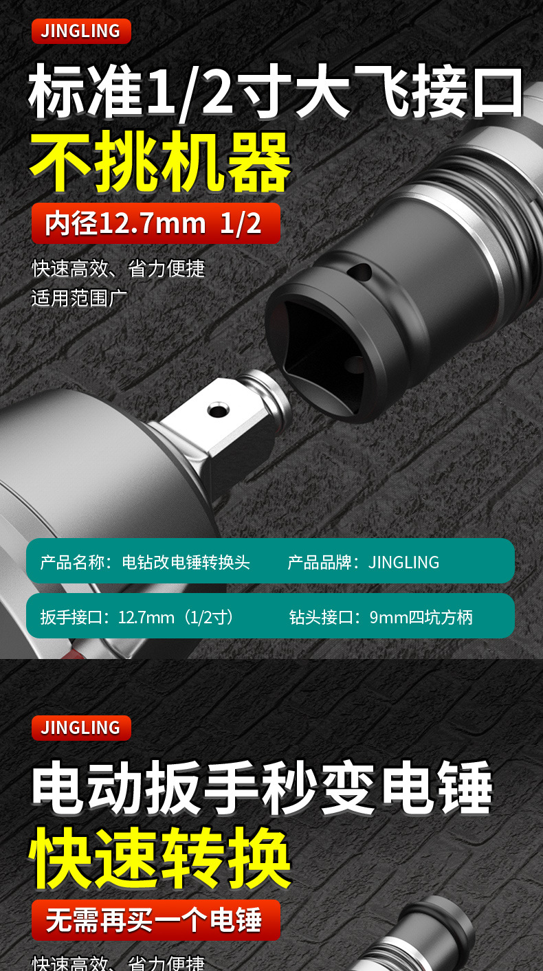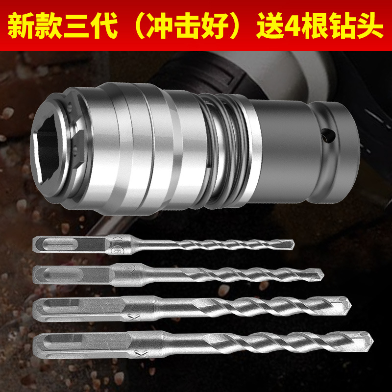 전기 렌치 전기 해머 충격 드릴 1/2 사각형 핸들 4 개의 구덩이 범용 다기능 수정 액세서리 어댑터스토어 가기