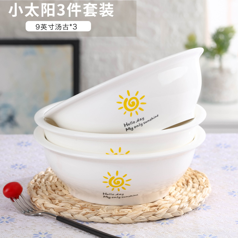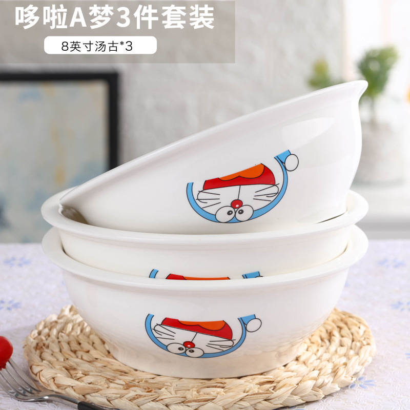가정용 대형 수프 그릇 3 세라믹 디너 보울 세트 쌀 그릇 창조적 인 그릇 수프 큰 수프 숟가락이있는 고대 즉석 국수 그릇