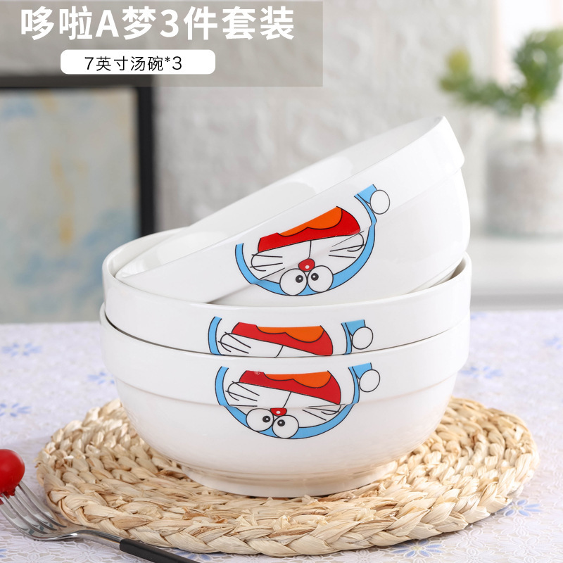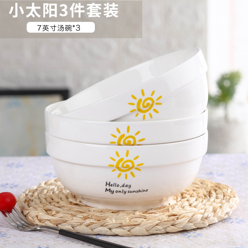 가정용 대형 수프 그릇 3 세라믹 디너 보울 세트 쌀 그릇 창조적 인 그릇 수프 큰 수프 숟가락이있는 고대 즉석 국수 그릇스토어 가기