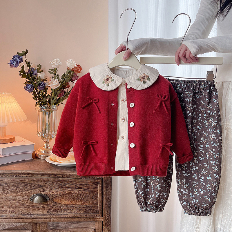 [점포 판매] 여자 봄 어린이 세트 셔츠 2025 새 봄 · 가을 외국식 아기 스웨터 3 개
