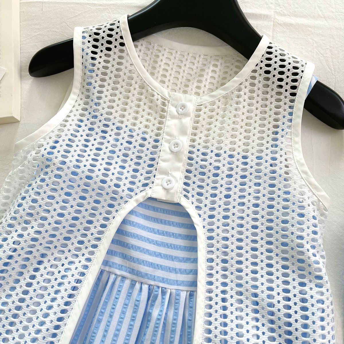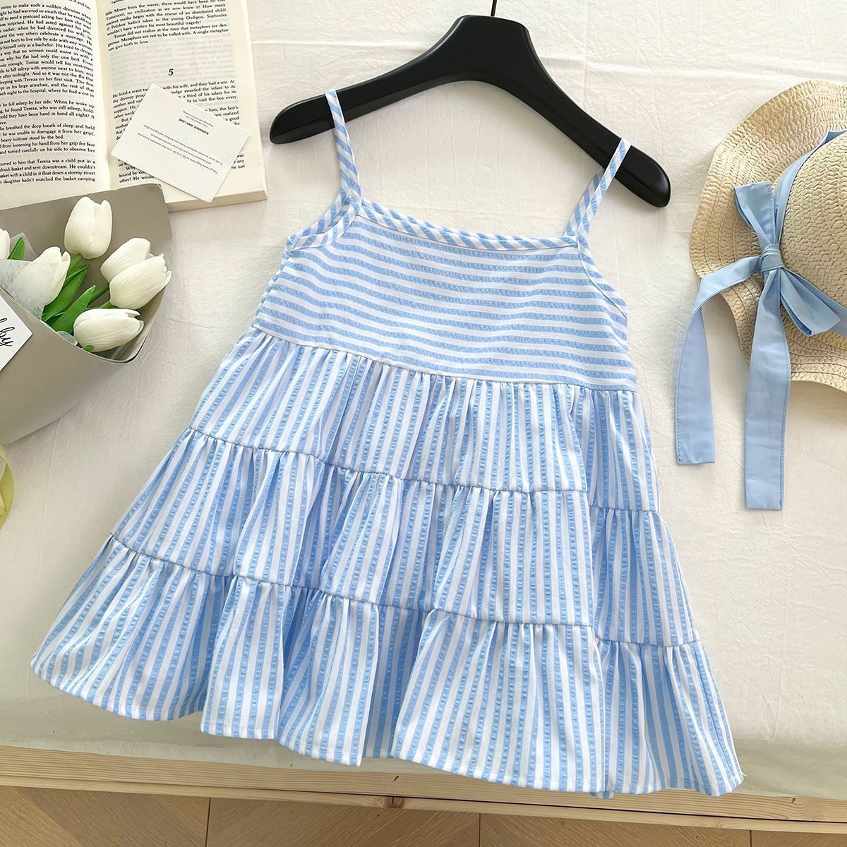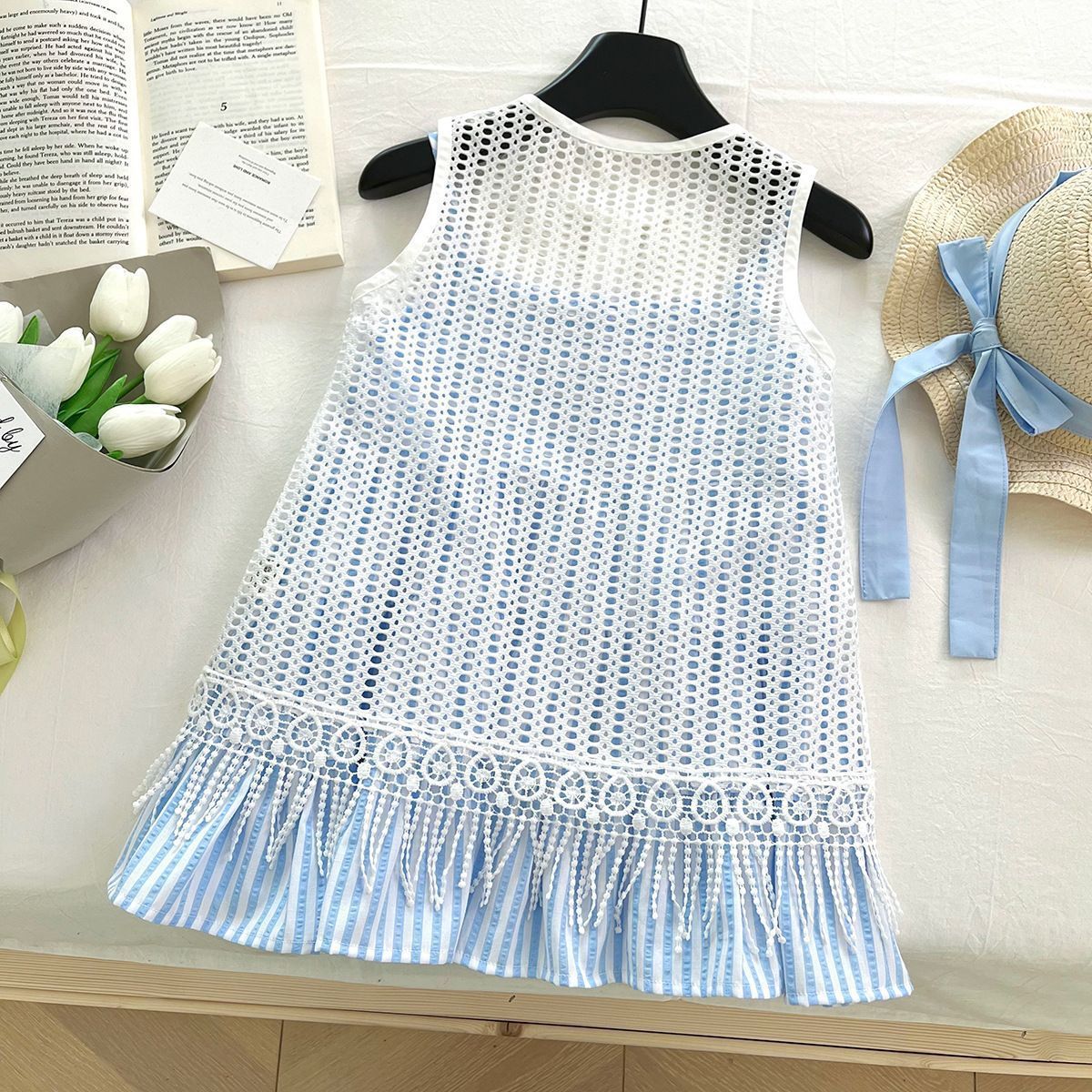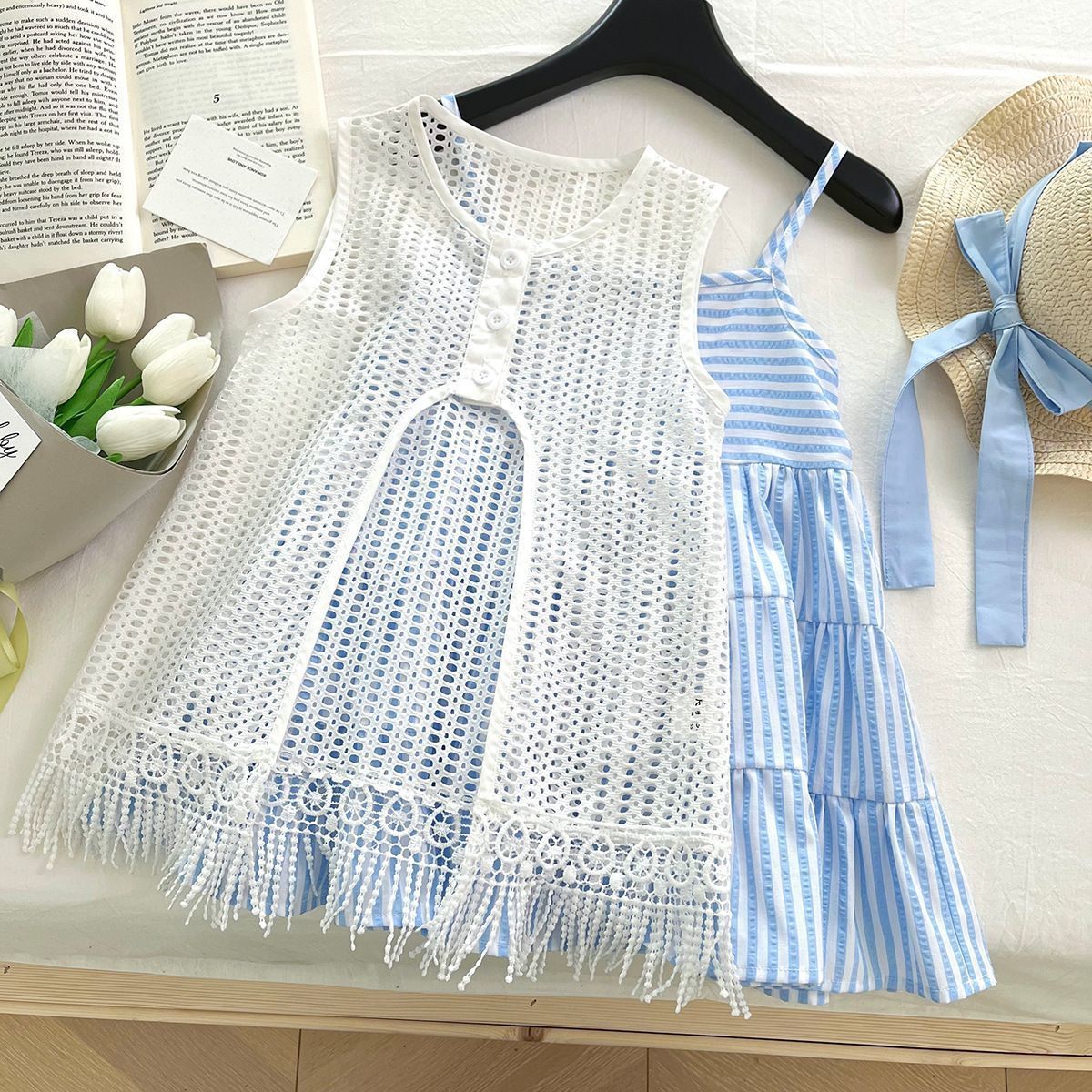 2025 새로운 한국 스타일 중공 휴가 카디건 스타일 줄무늬 원피스 소녀의 여름 달콤한 소녀 원피스 투피스 유행 세트스토어 가기