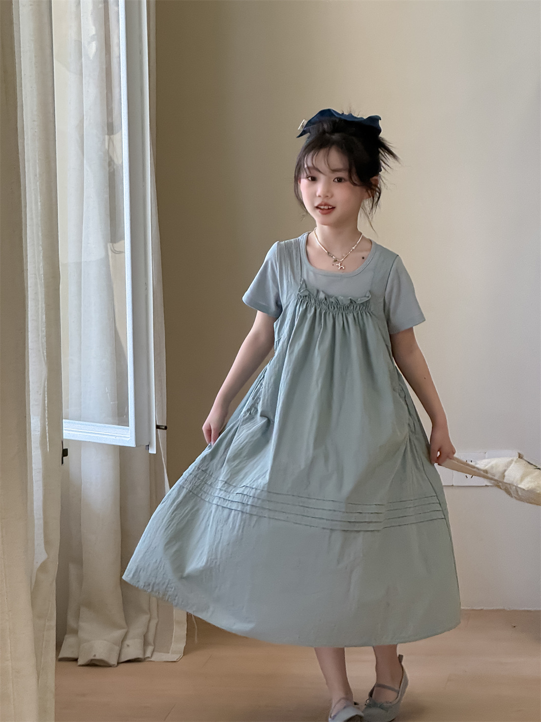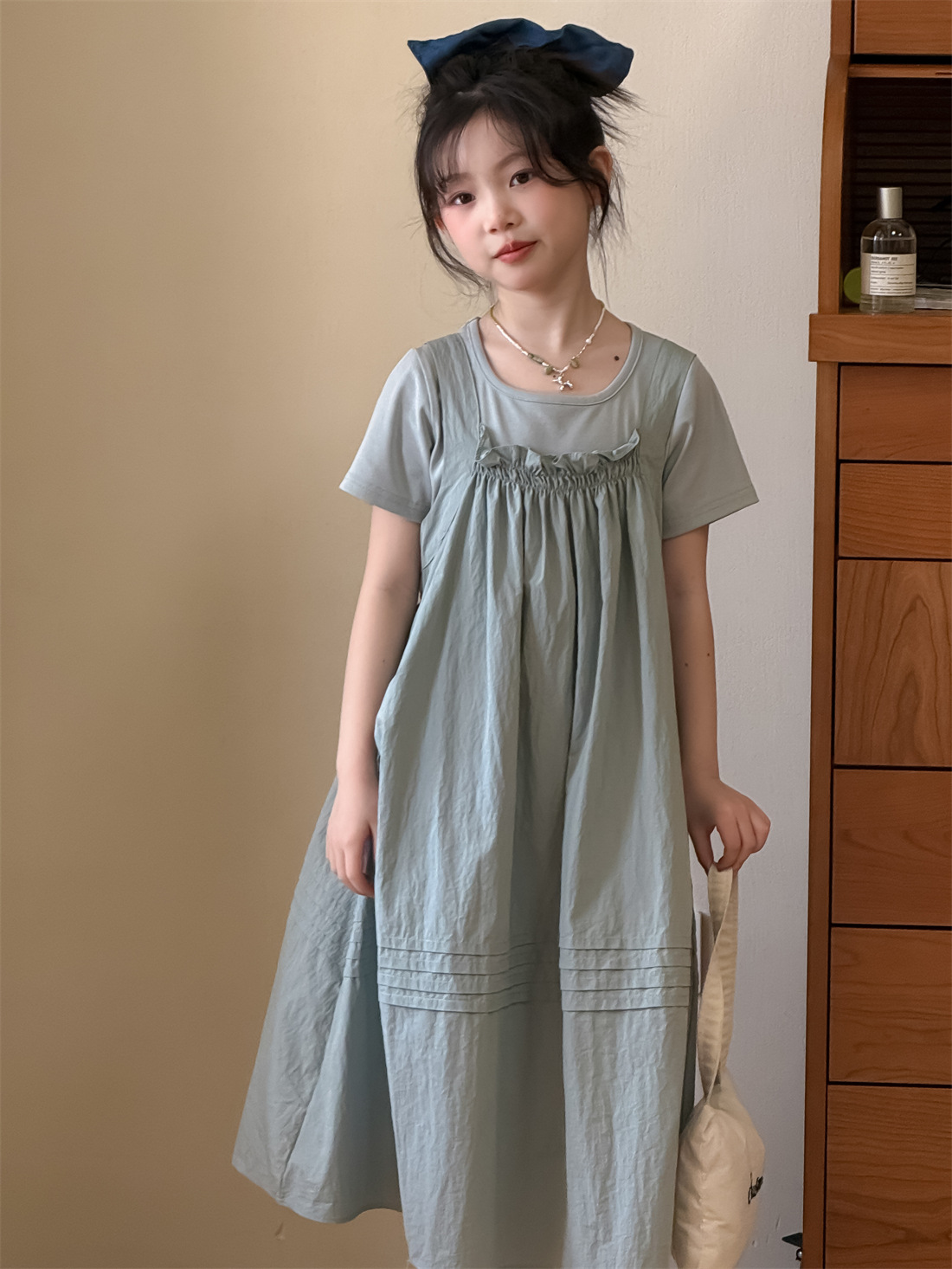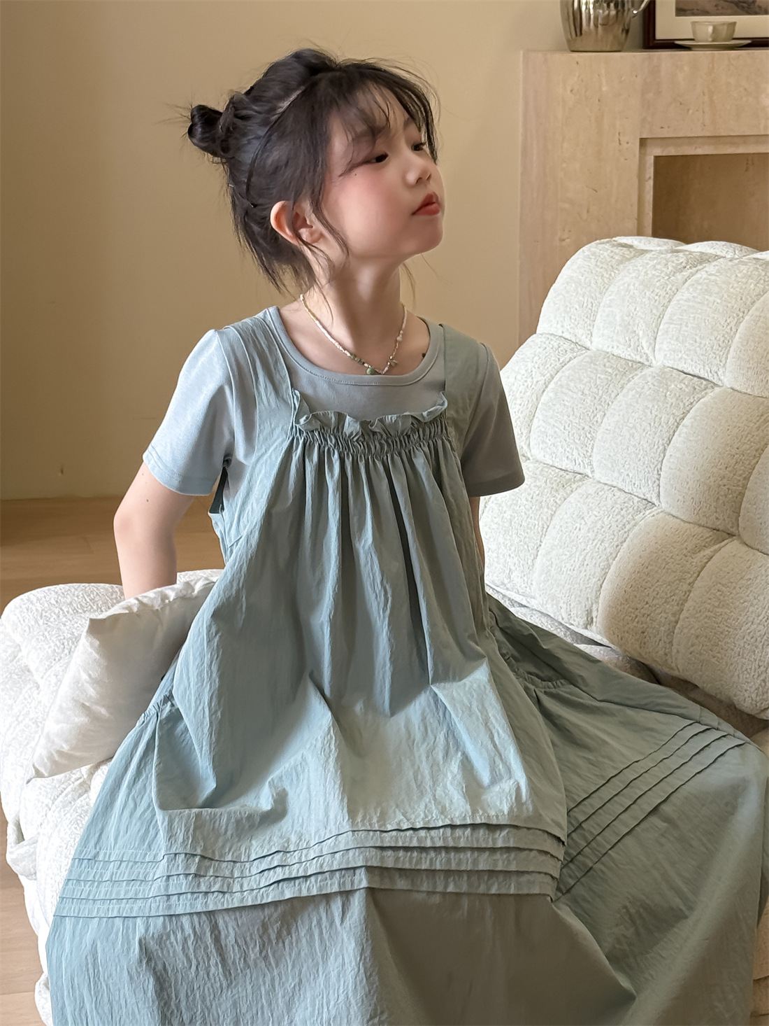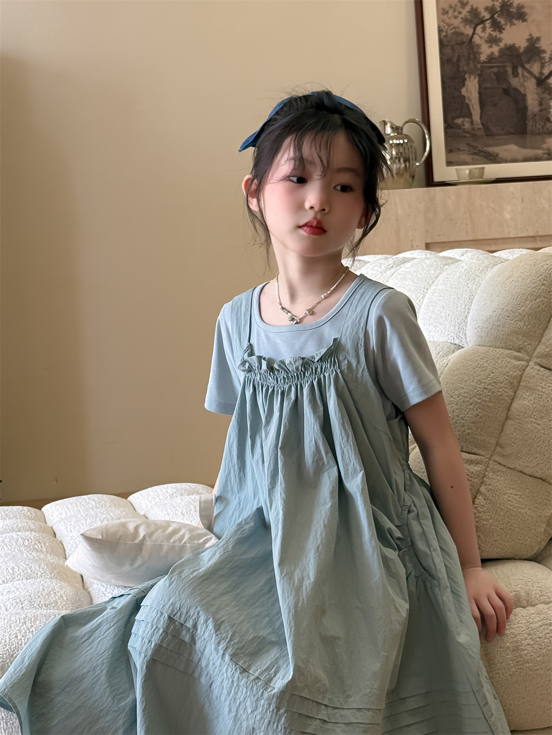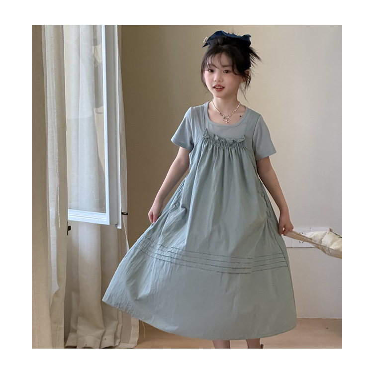꽃과 아이 의류 소녀 찾기 2025 세트 여름 새 어린이 원피스 한국 티셔츠 캐주얼 스트랩 스커트 조수스토어 가기