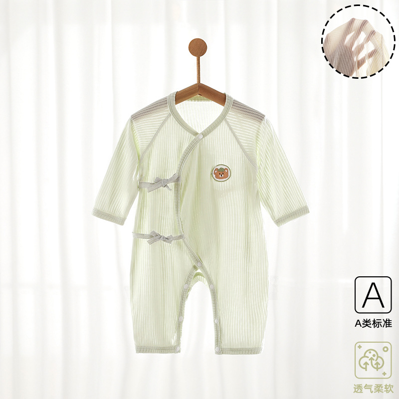 아기 여름 점프 수트 모달 긴팔 나비 모자 아기 배꼽 보호 얇은 몽크 옷 에어컨 등반 옷