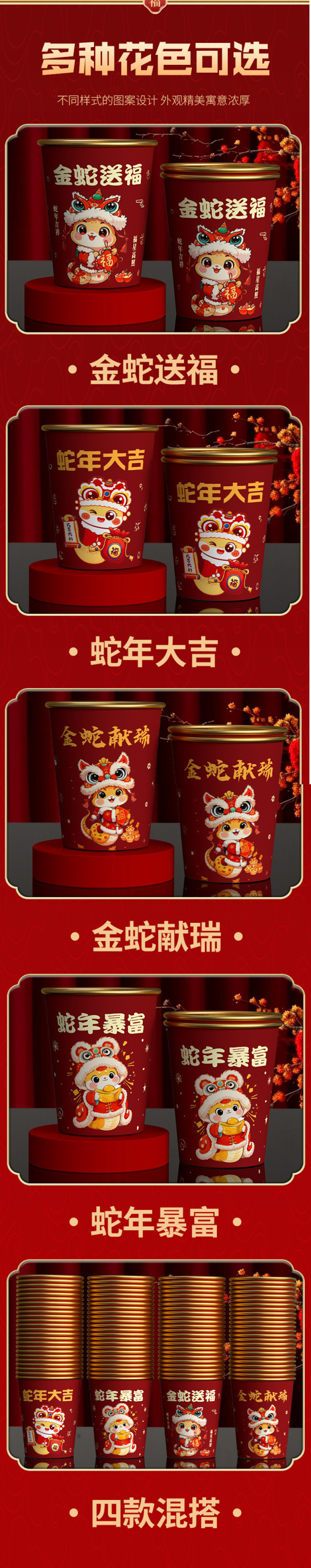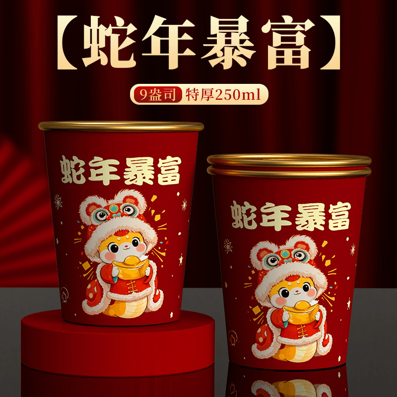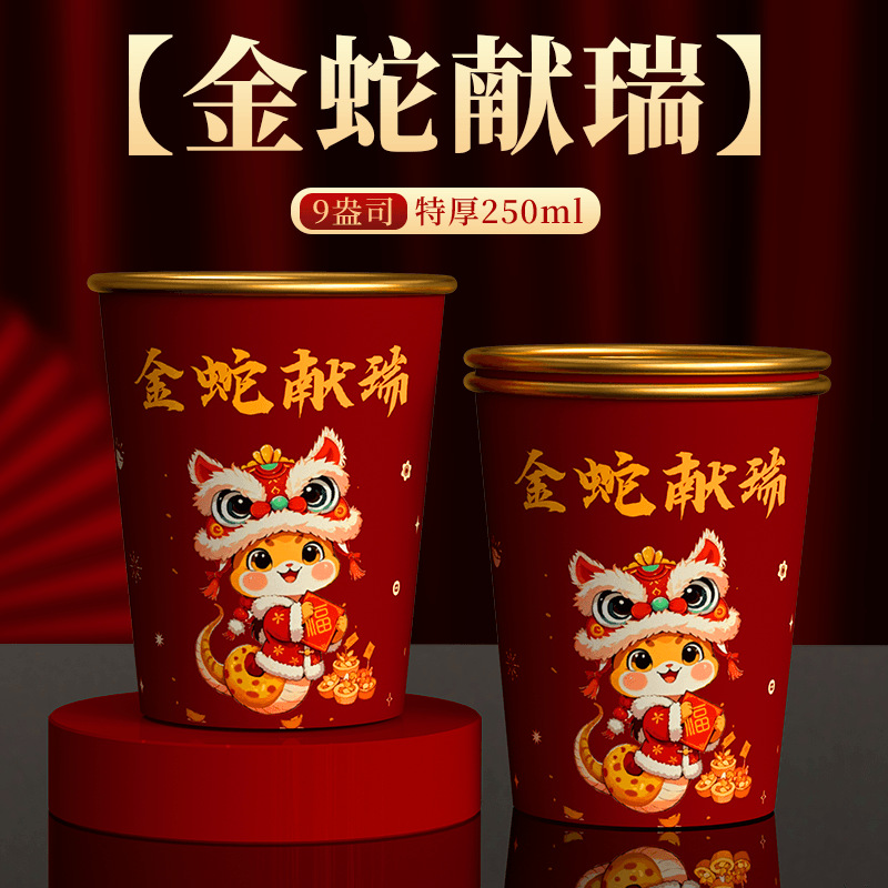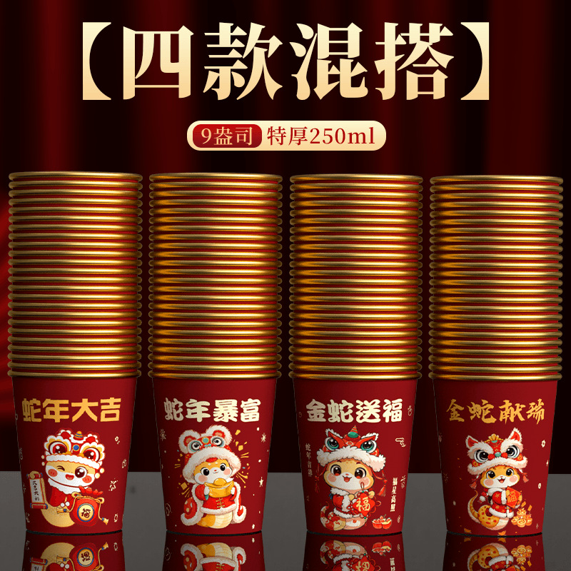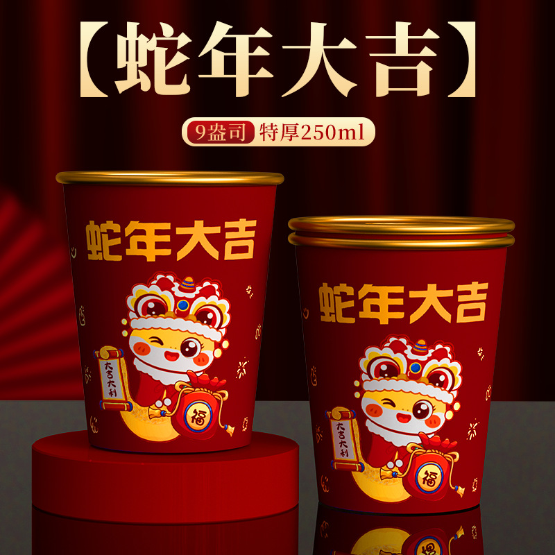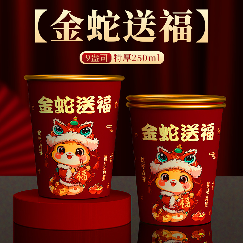 2025 년 스네이크 골드 호일 종이컵 일회용 종이컵 두꺼운 가정 설날 중국 설날 중국 설날 종이컵스토어 가기
