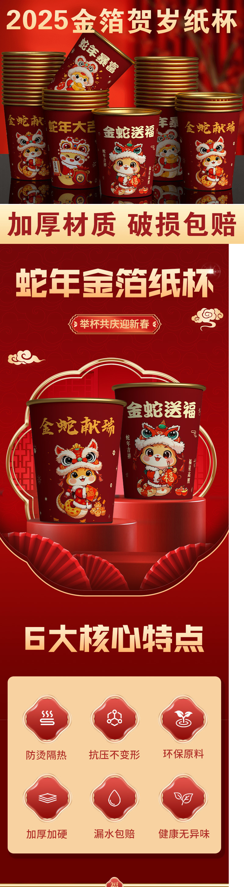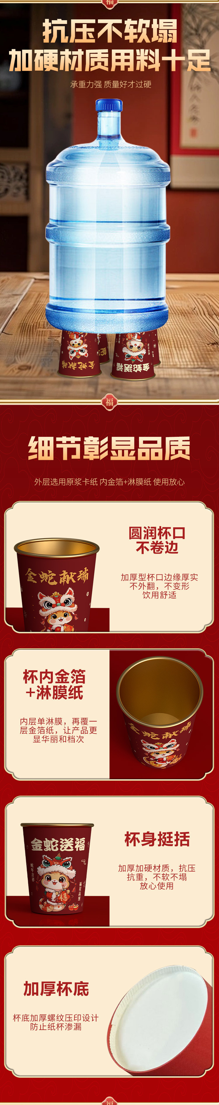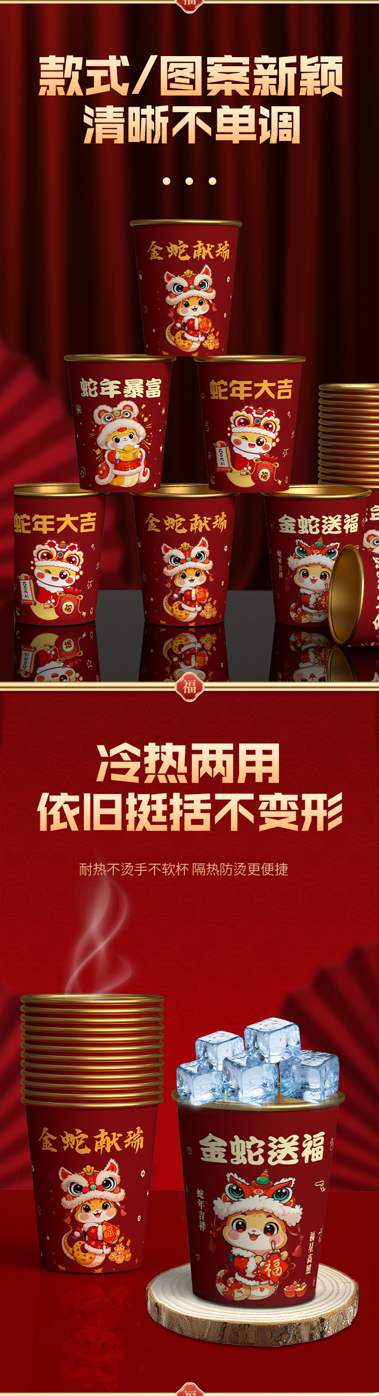 2025 년 스네이크 골드 호일 종이컵 일회용 종이컵 두꺼운 가정 설날 중국 설날 중국 설날 종이컵스토어 가기